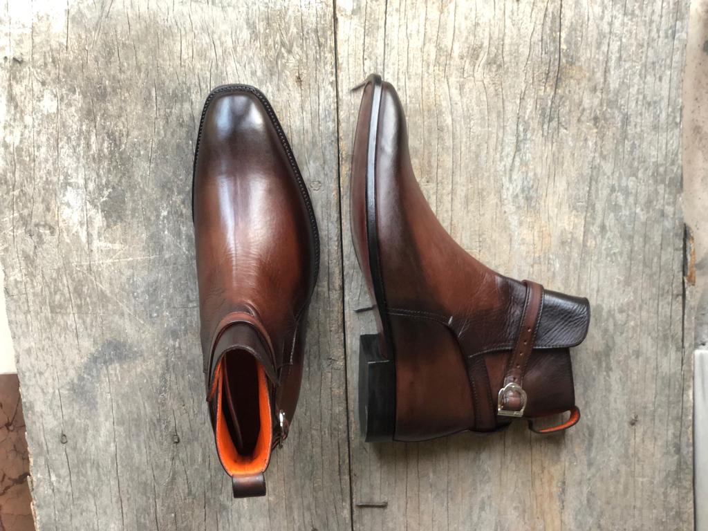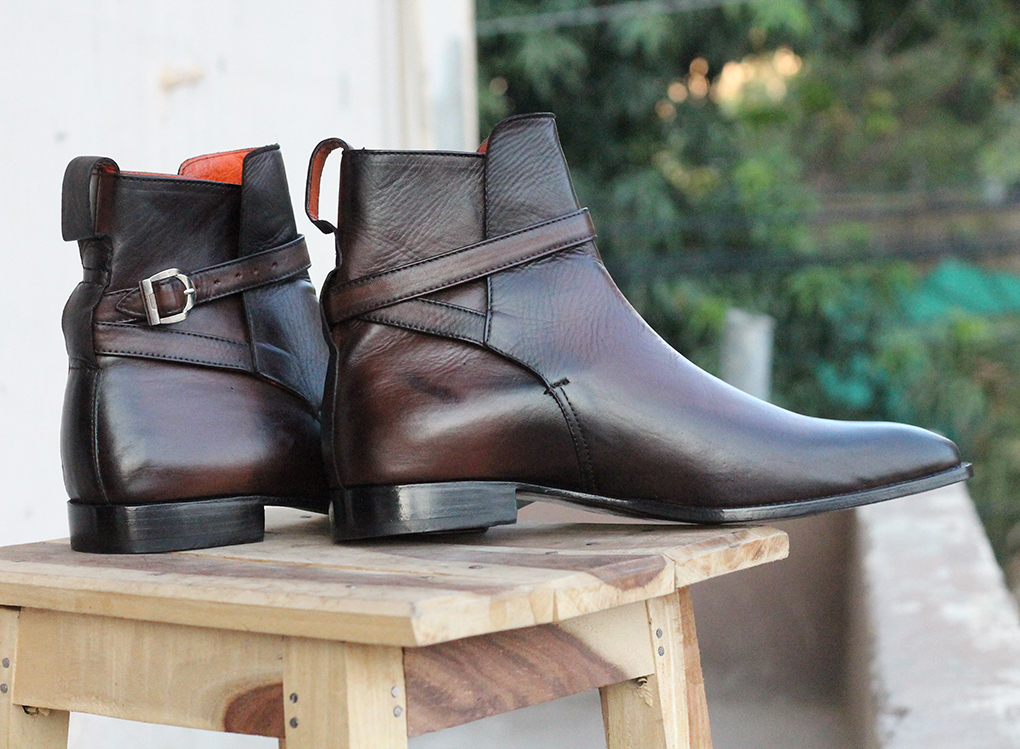 Handmade Brown Leather Casual Ankle High Jodhpurs Buckle Boots for Men's