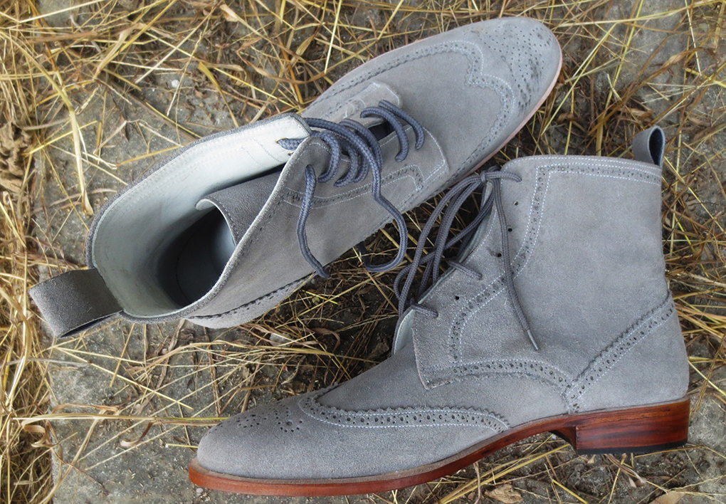 Handmade Men's Gray Color Ankle High Boot, Men's Suede Wing Tip Brogue Lace Up Boot
