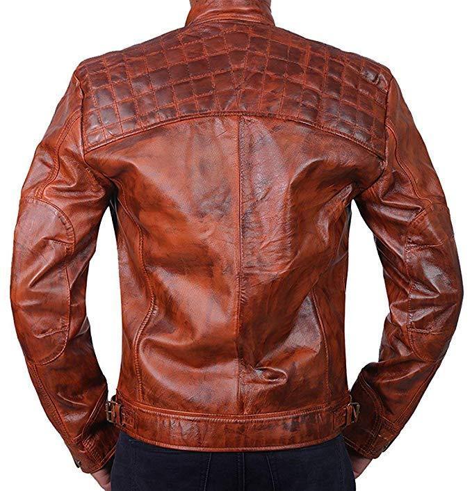 Mens Retro Cafe Racer Vintage Distressed Motorcycle Tan Leather Biker Jacket