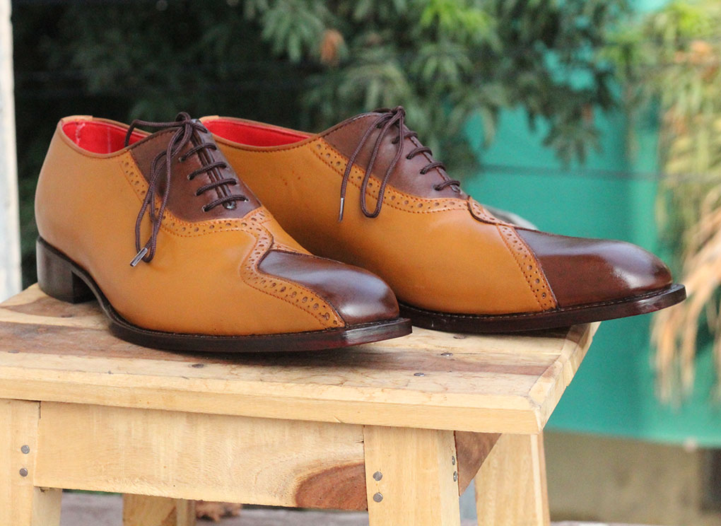 Handmade Men's Designing Shoes, Men's Tan Brown Leather Lace Up Shoes