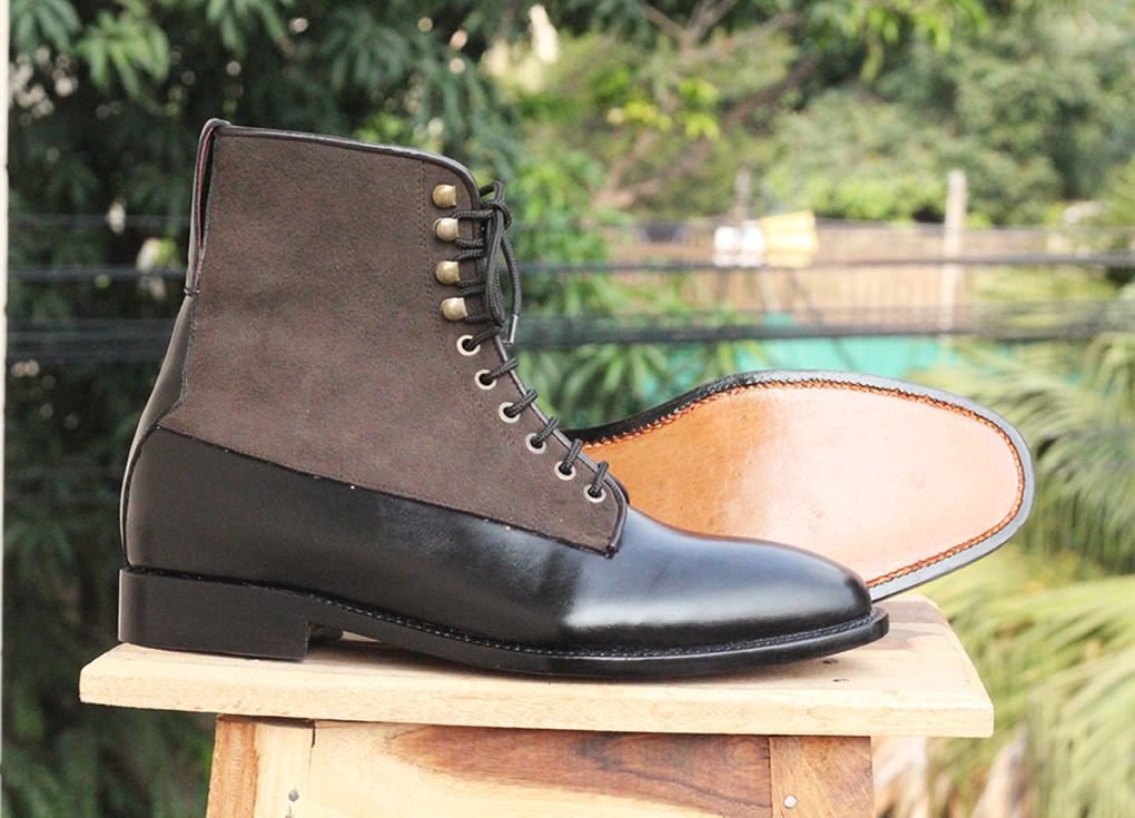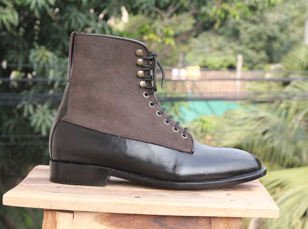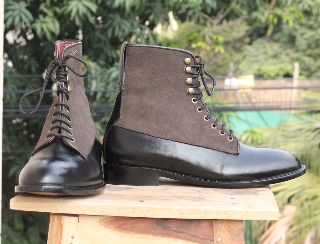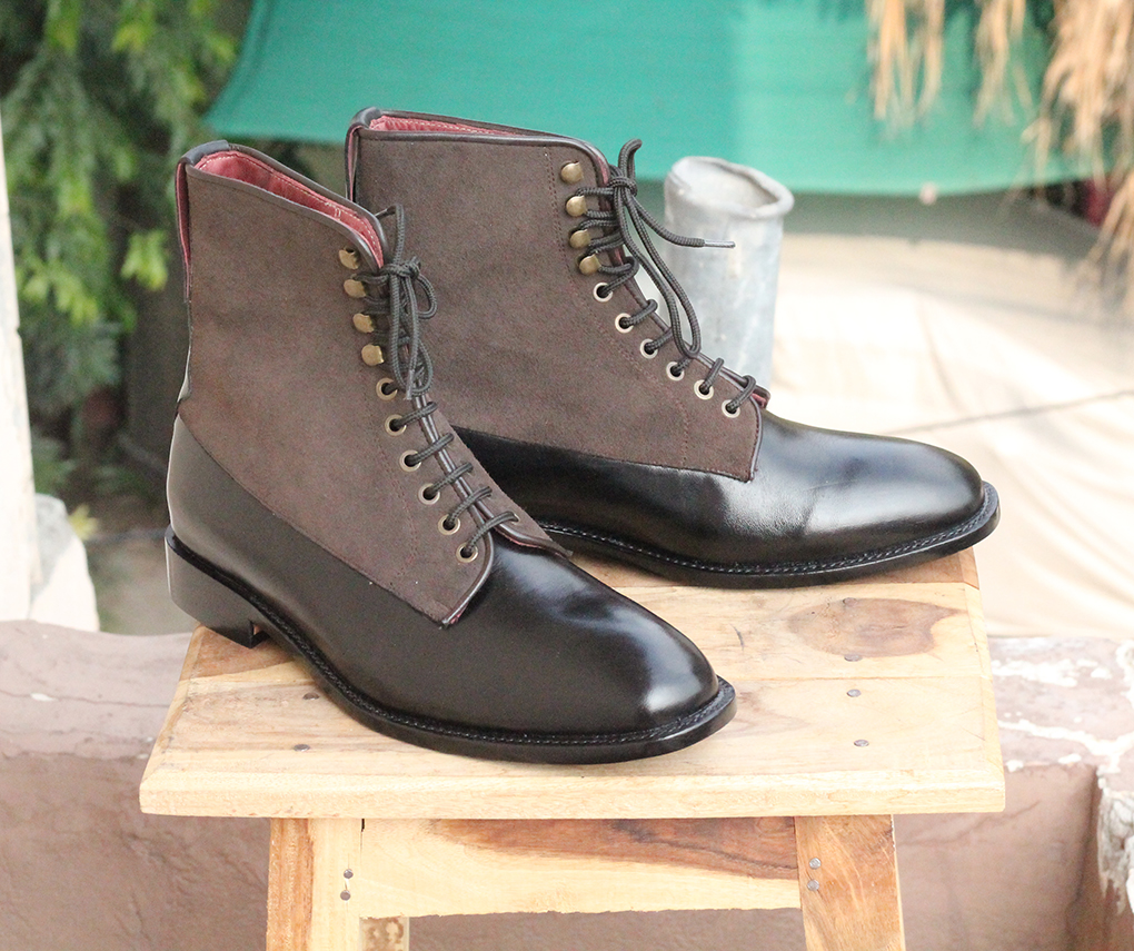Black Two Tone Ankle Boots Suede & leather boots for mens