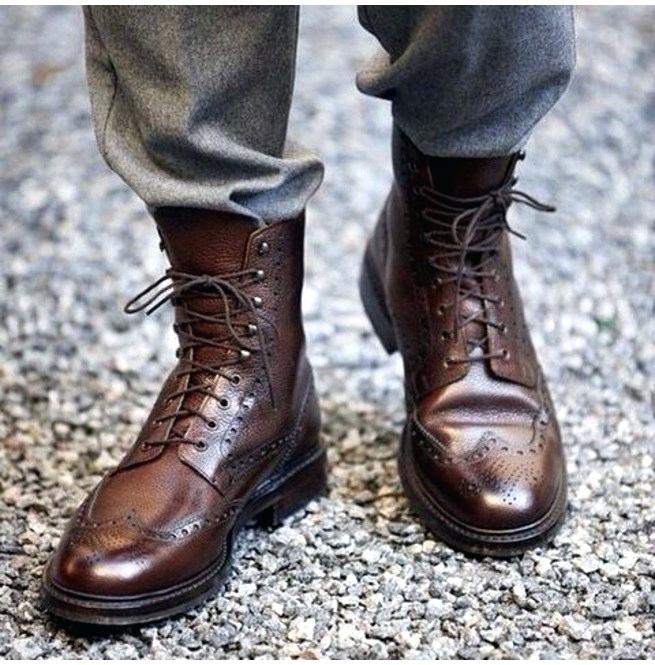 Handmade Men Wingtip Boots, Men Brown Ankle High Leather Lace up Boot for men's