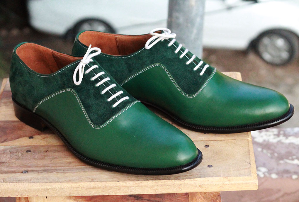 Men's Green Genuine Leather Suede Oxford Handmade Lace Up Shoes