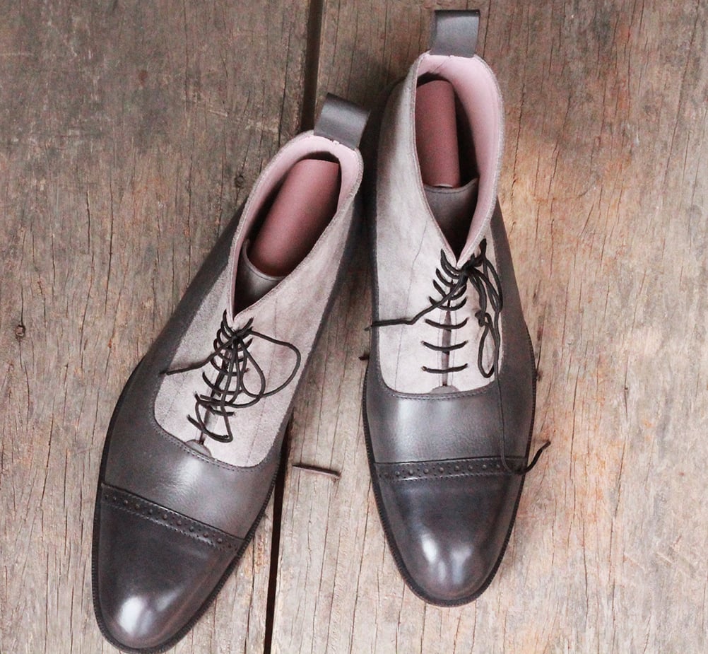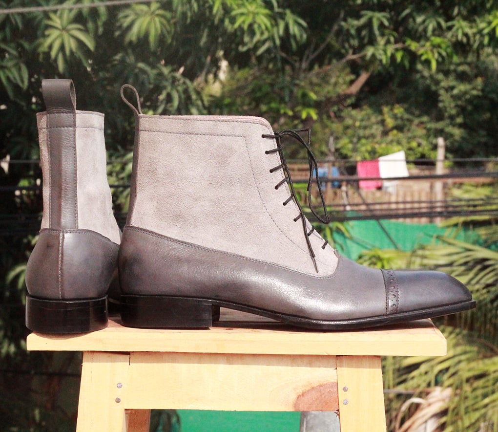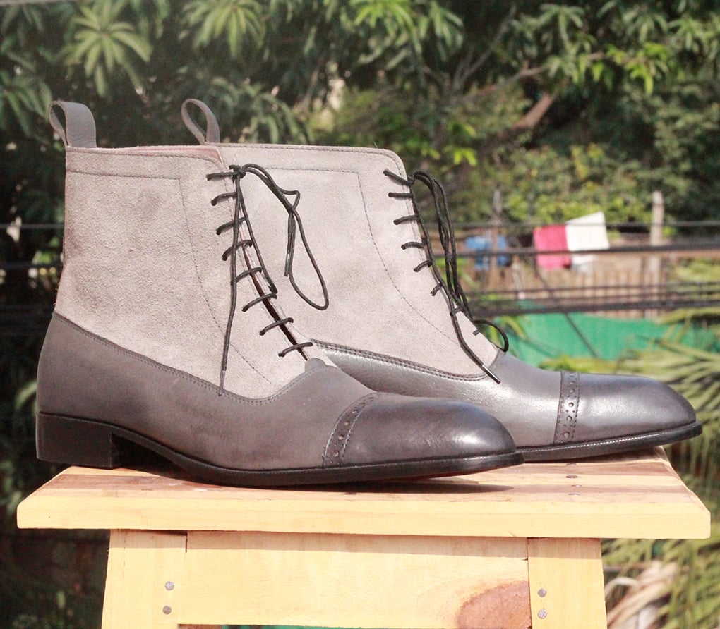 Ankle High Gray Cap Toe Boot, Men's Handmade Leather Suede Lace Up Boots For men's Boot