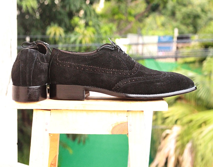 Men's Black Suede Oxford Handmade Lace Up Wing tip Brogue Shoes