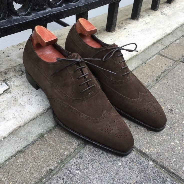 Men's Handmade Brown Suede formal shoes, Men's Wing Tip Brogue Lace Up Shoes