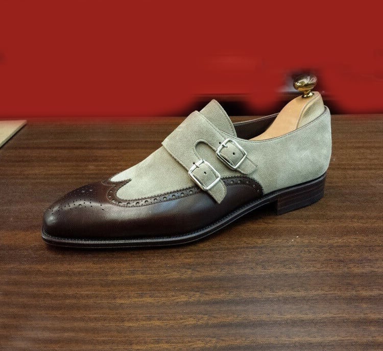 Handmade Brown Gray Double Monk shoes, Dress shoes