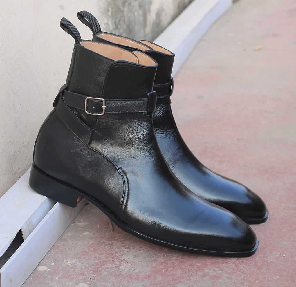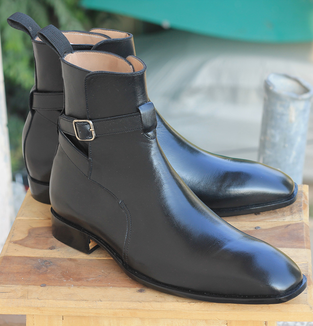 Ankle High Black Color Jodhpurs Boot, Men's Handmade Leather Buckle Boots