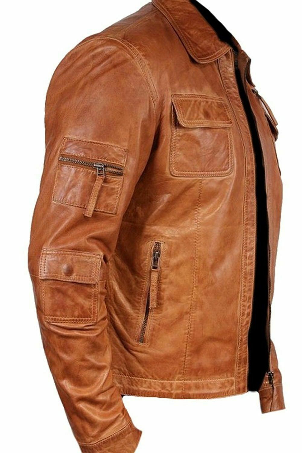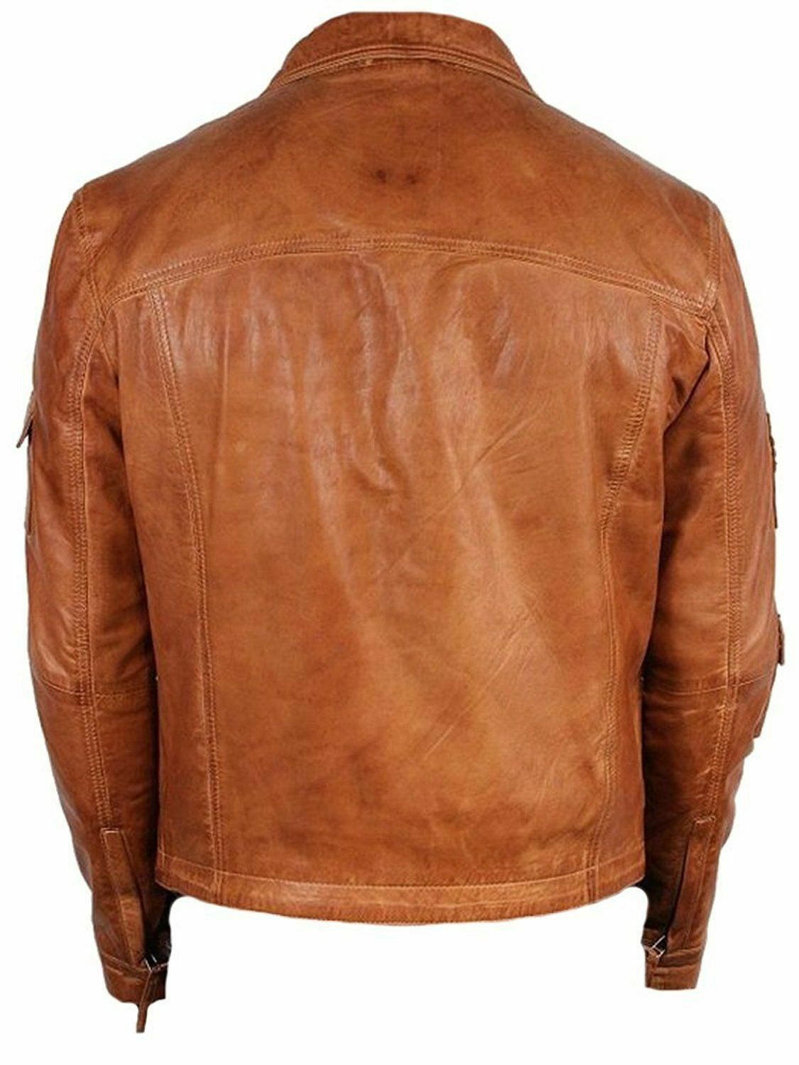 Men's Fashion Lambskin Leather Tan Waxed Moto Jacket