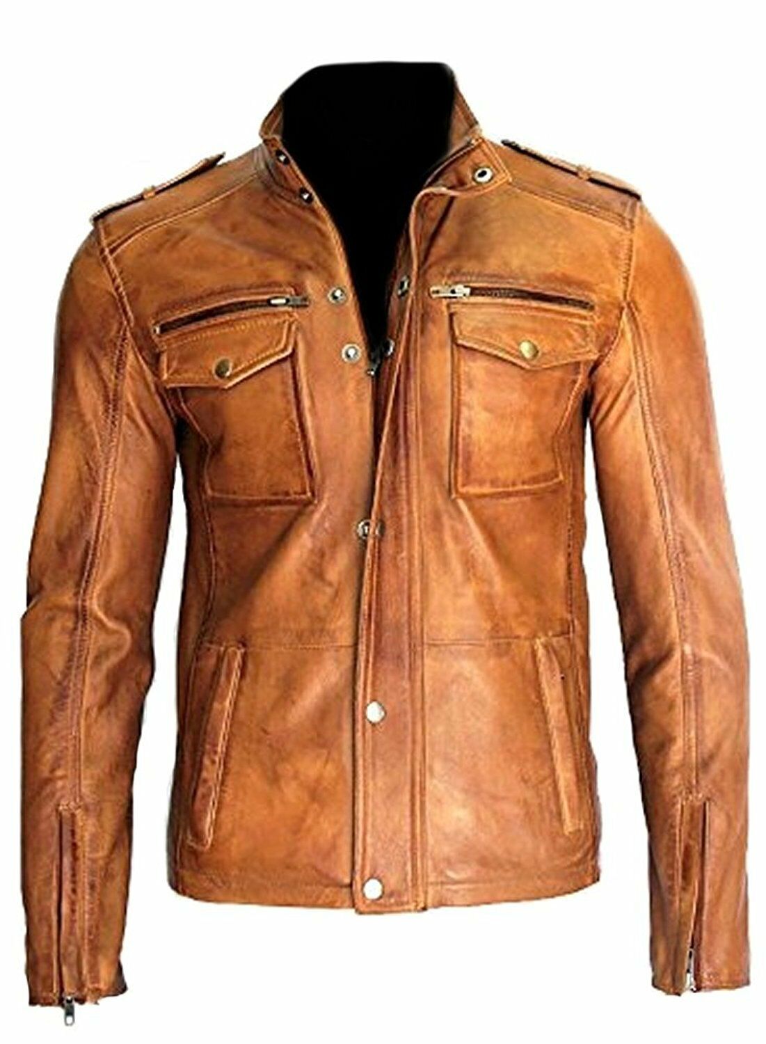 Men's Fashion Real Lambskin Tan Leather Waxed Moto Jackets