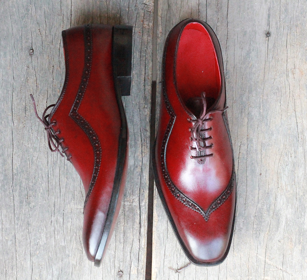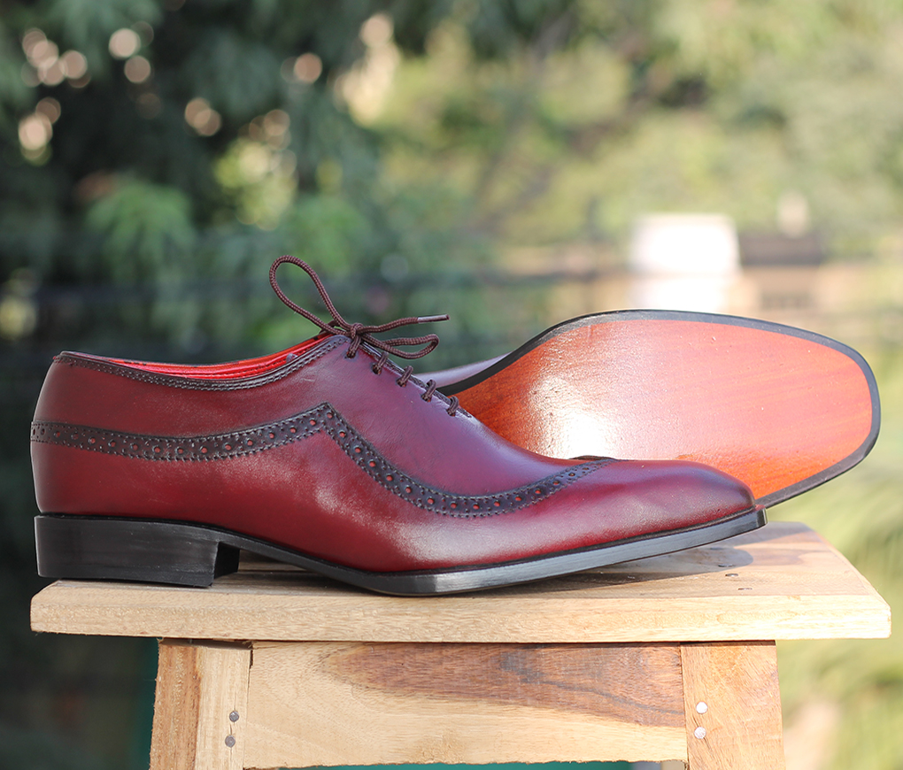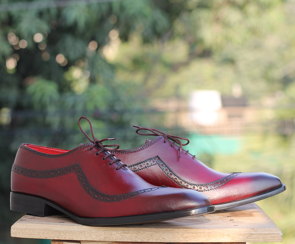 Men's Handmade Burgundy Color Leather formal shoes, Men's Designing Lace Up Shoes