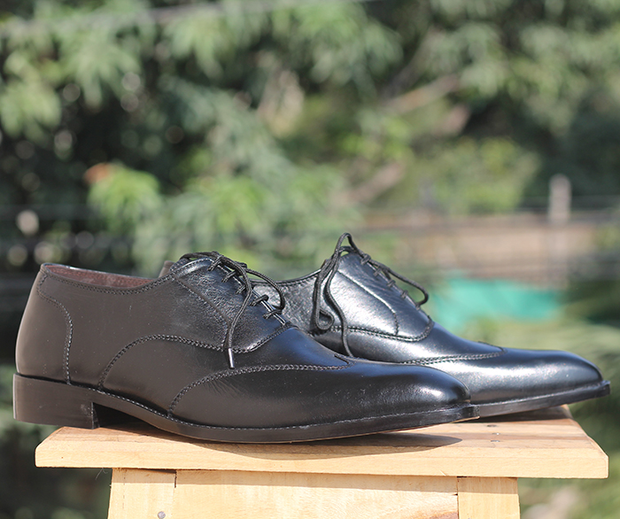Men's Handmade Black Color Leather formal shoes, Men's Wing Tip Lace Up Shoes