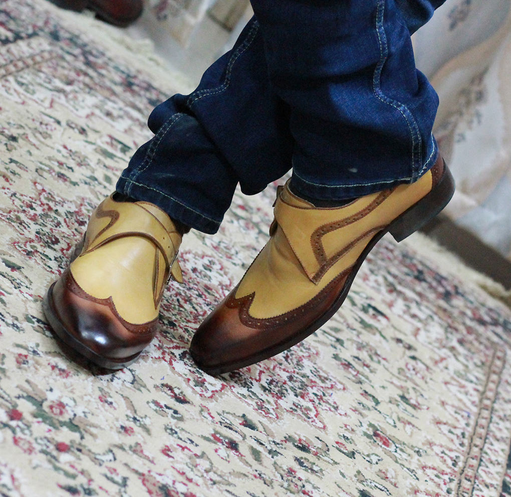 Handmade Brown Tan Monk Strap Leather shoes for Men's