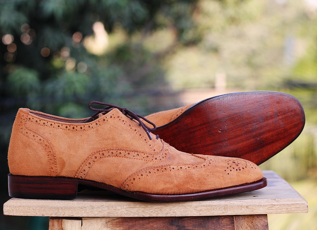 Handmade Tan Lace Up Suede shoes, Men's wingtip Brogue Casual Shoes