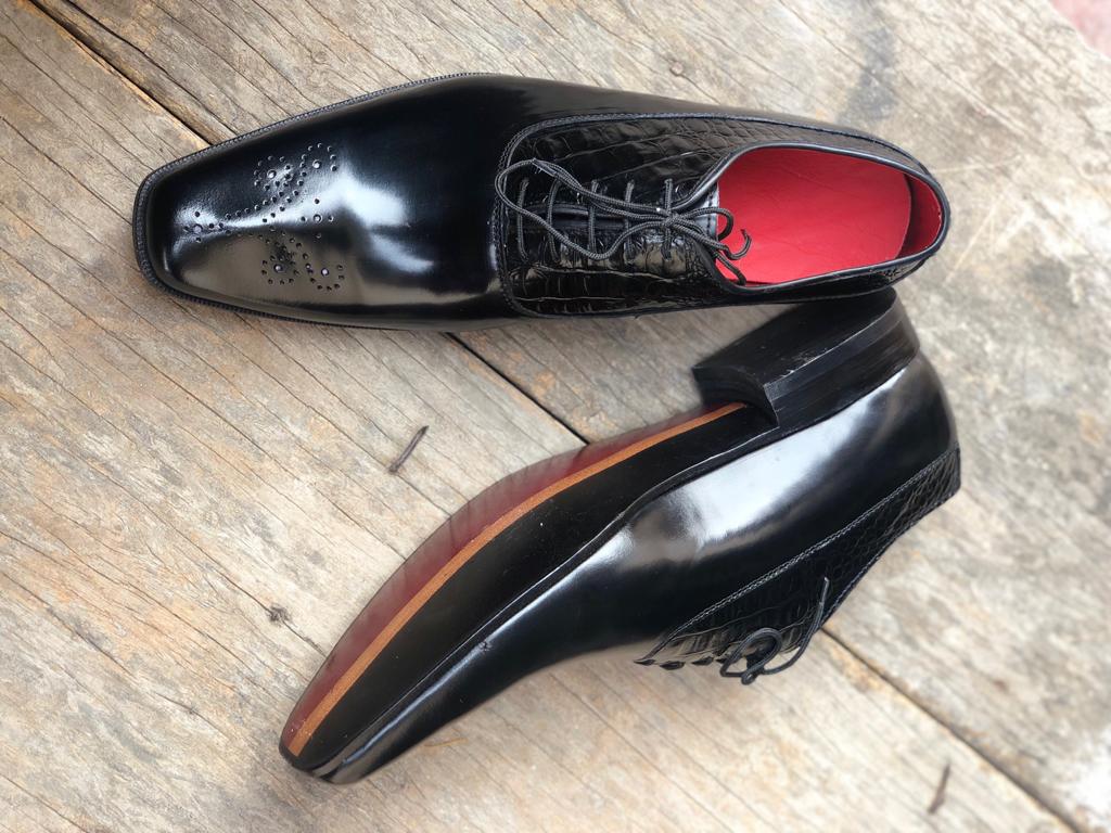 Black Alligator Skin Leather shoes For Men's