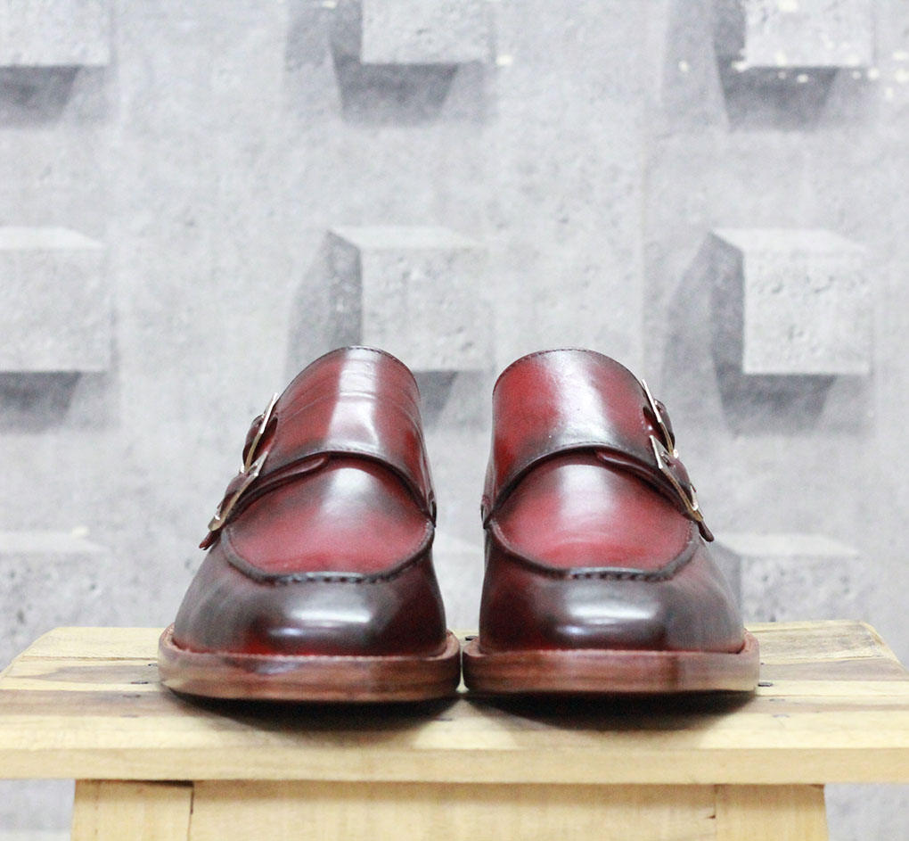 Handmade Tone Burgundy Leather shoes, Men's Double Monk Formal Shoes