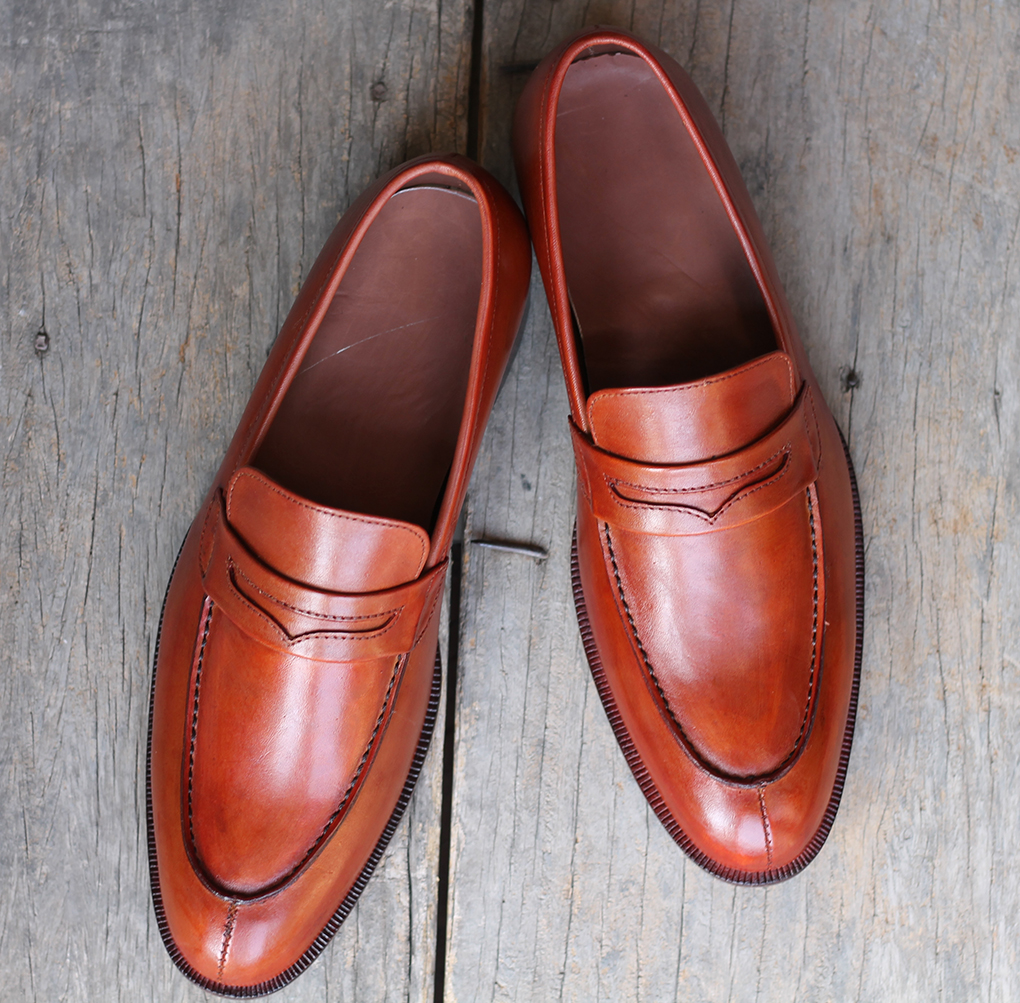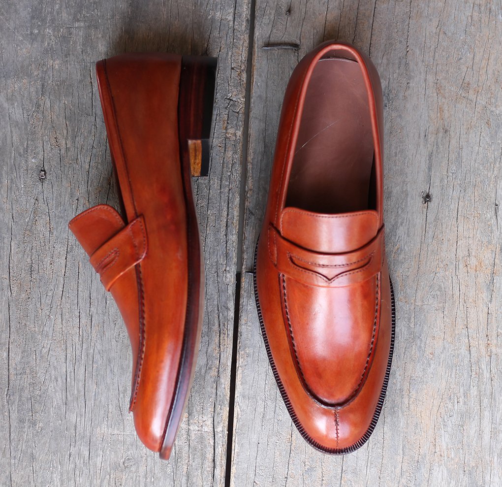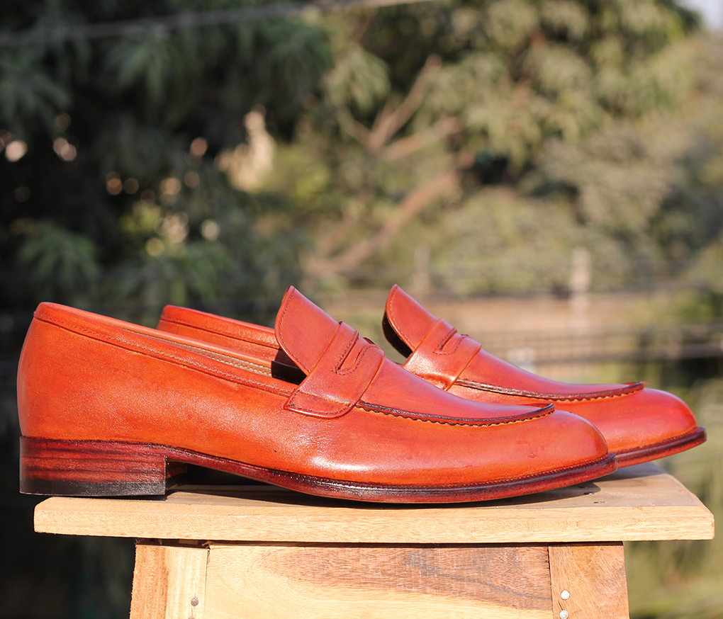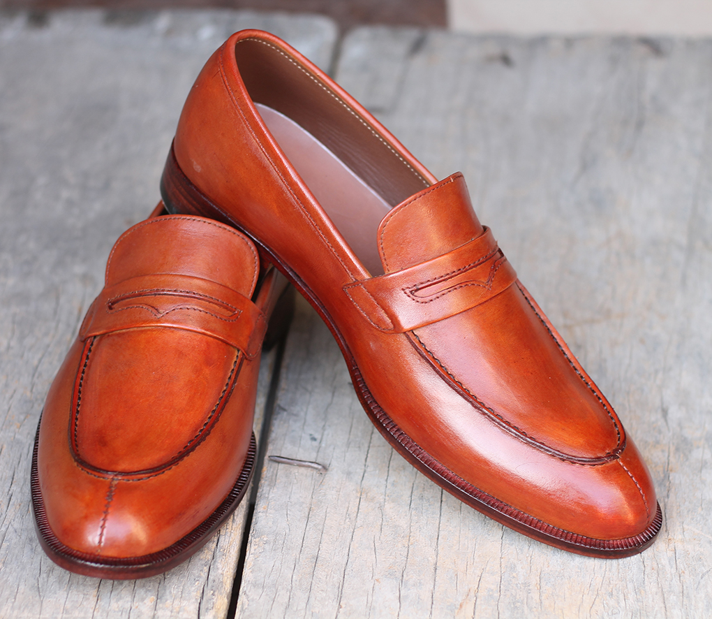 Handmade Tan Leather shoes, Men's Split Toe Penny Loafers Shoes