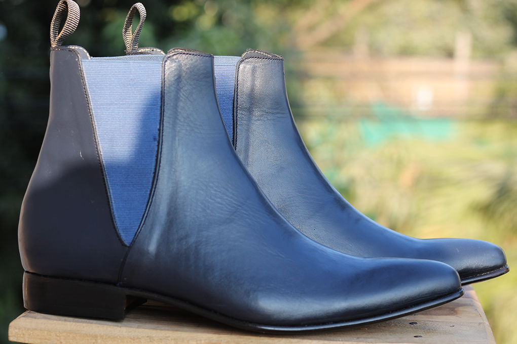 Handmade Men's Blue Ankle High Chelsea Boot, Men's Leather Boot