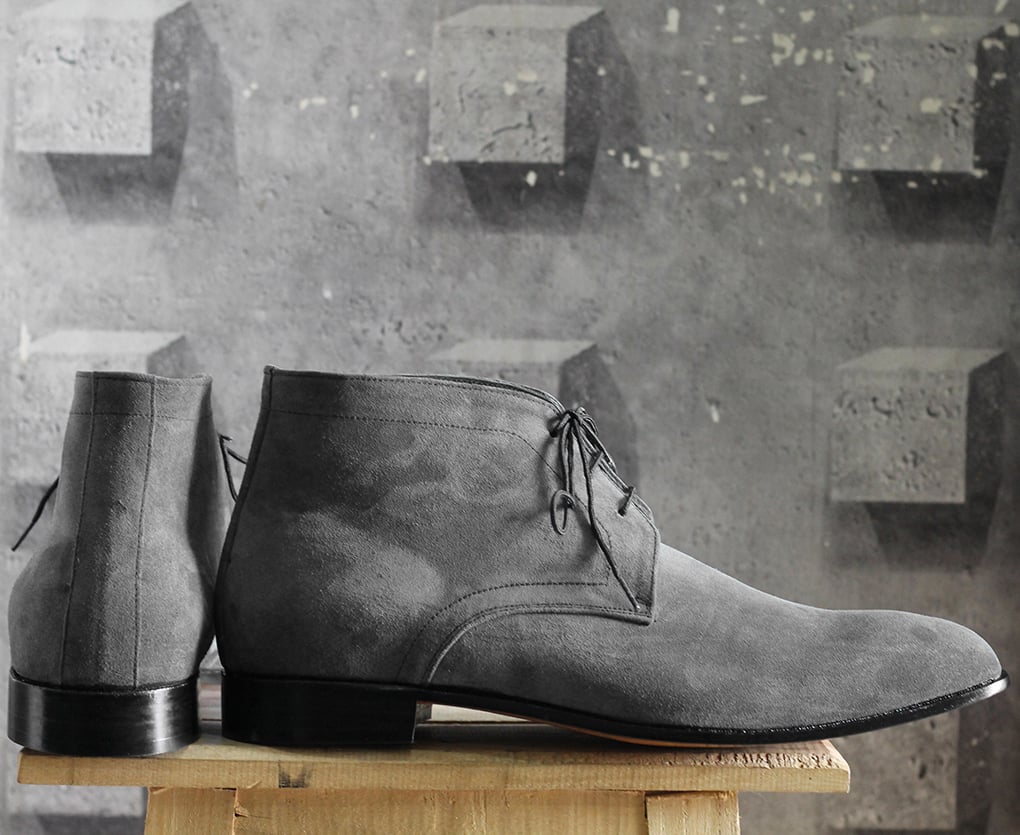 New Handmade Half Ankle Gray Suede Lace Up Boot For Men's