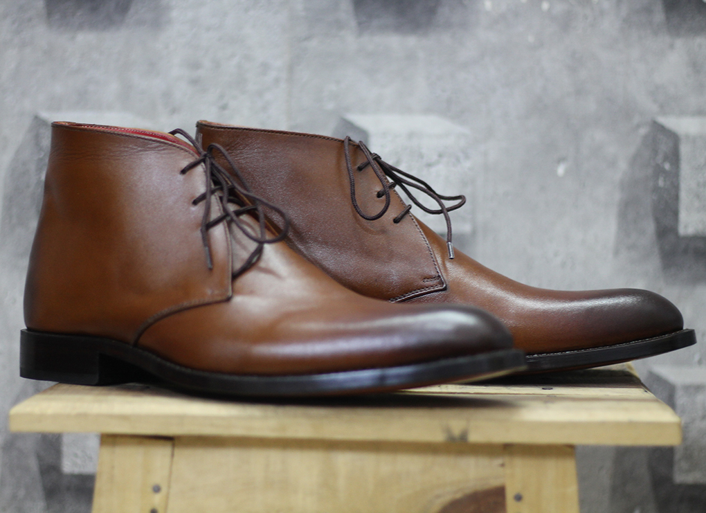New Handmade Half Ankle Brown Leather Lace Up Boot For Men's