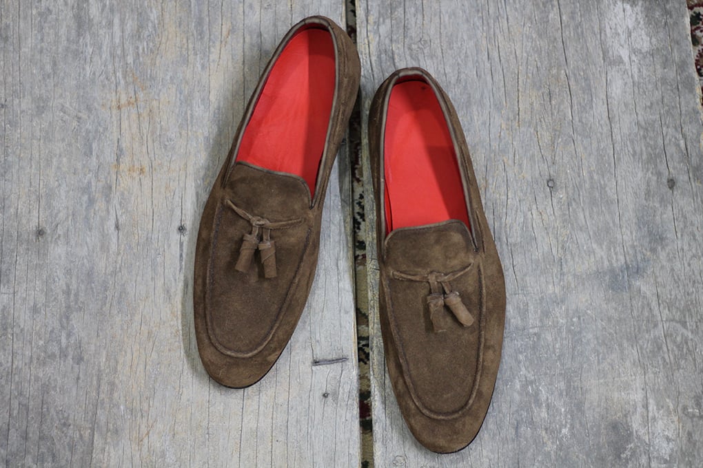 New Handmade Brown Suede Tussles Loafers Shoes For Men's