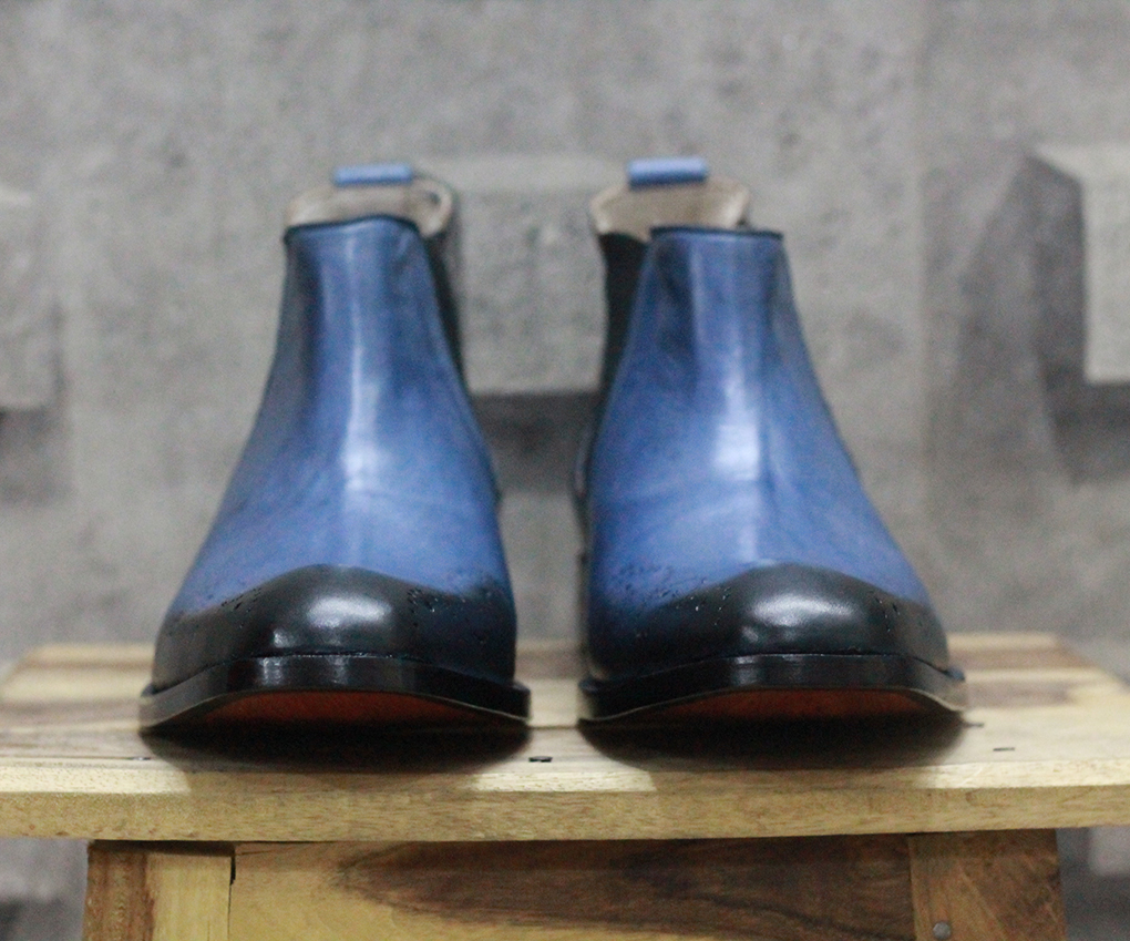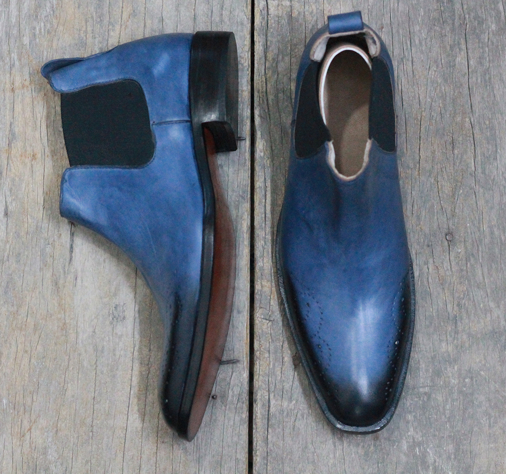 Handmade Men's Blue Brogue Half Ankle Chelsea Leather Boot