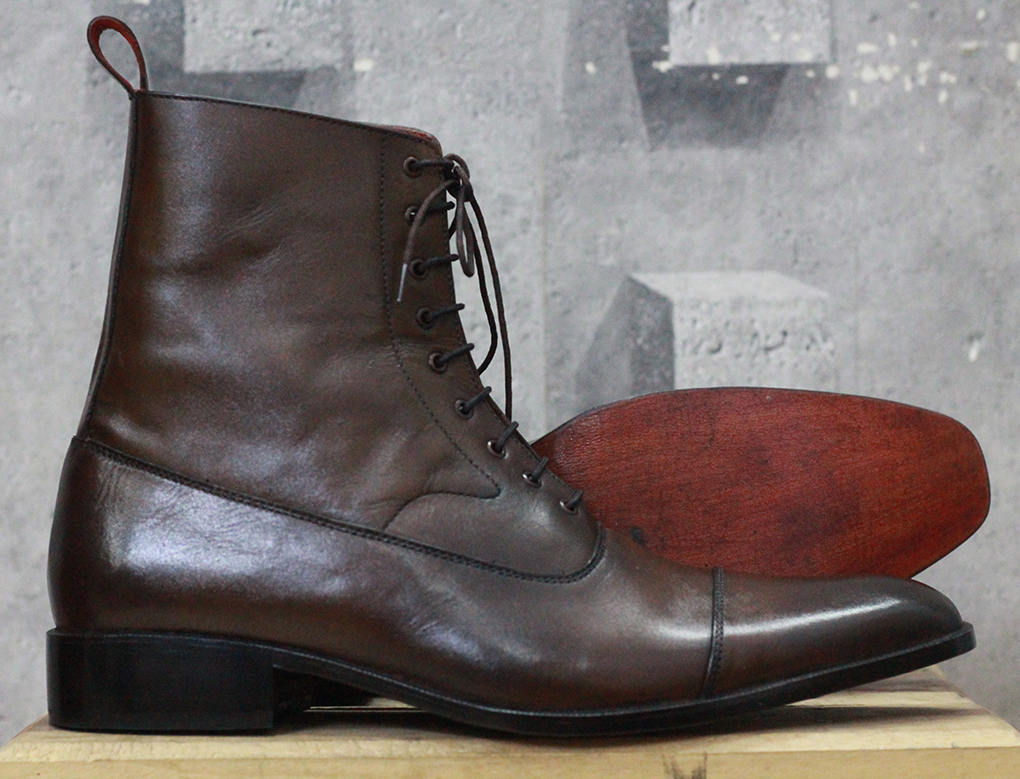 Handmade Brown Cap Toe Ankle Boots Men's Leather Lace Up Boot