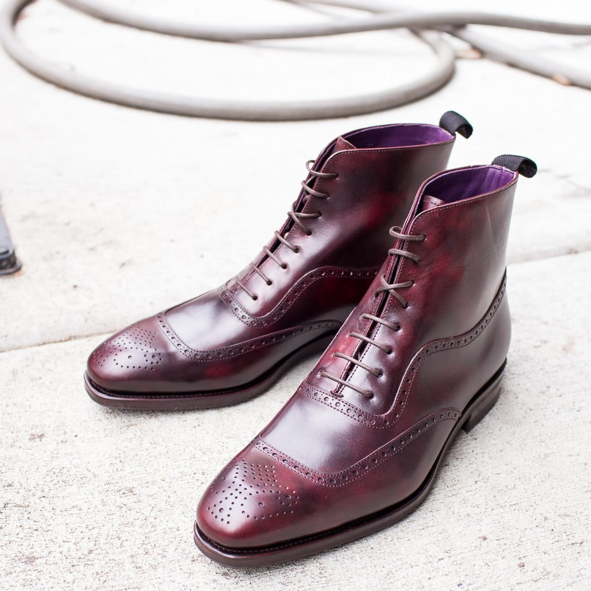 Handmade Maroon Square Toe Ankle Boots Men's Leather Lace Up Boot