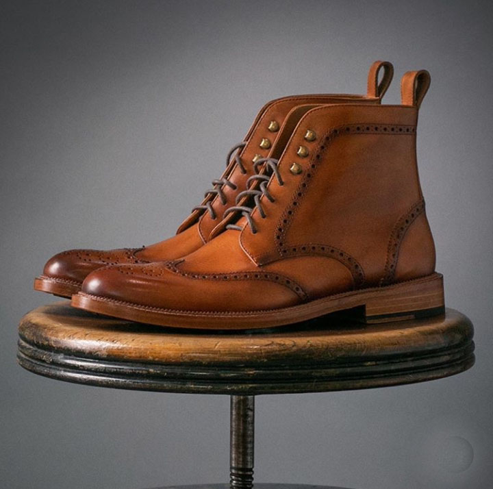 Men's Handmade Ankle High Tan Wing Tip Brogue Leather Lace Up Boot