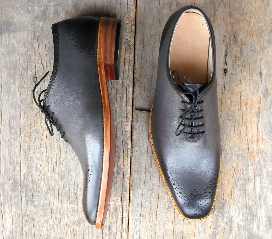Men's Handmade Stylish Gray Brogue Leather Lace Up Shoes