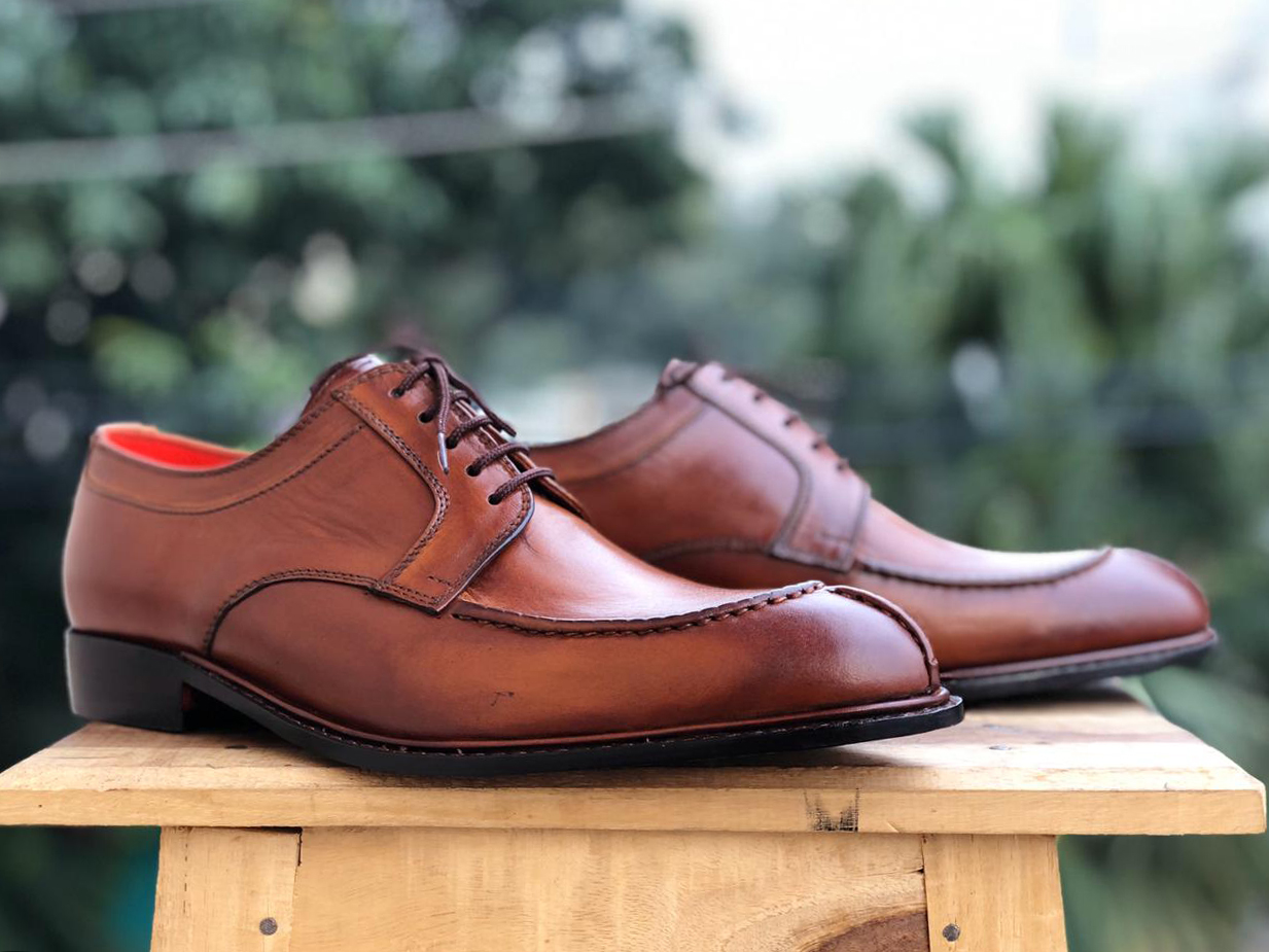 Handmade Brown Split Toe Leather Lace Up Shoes For Men's