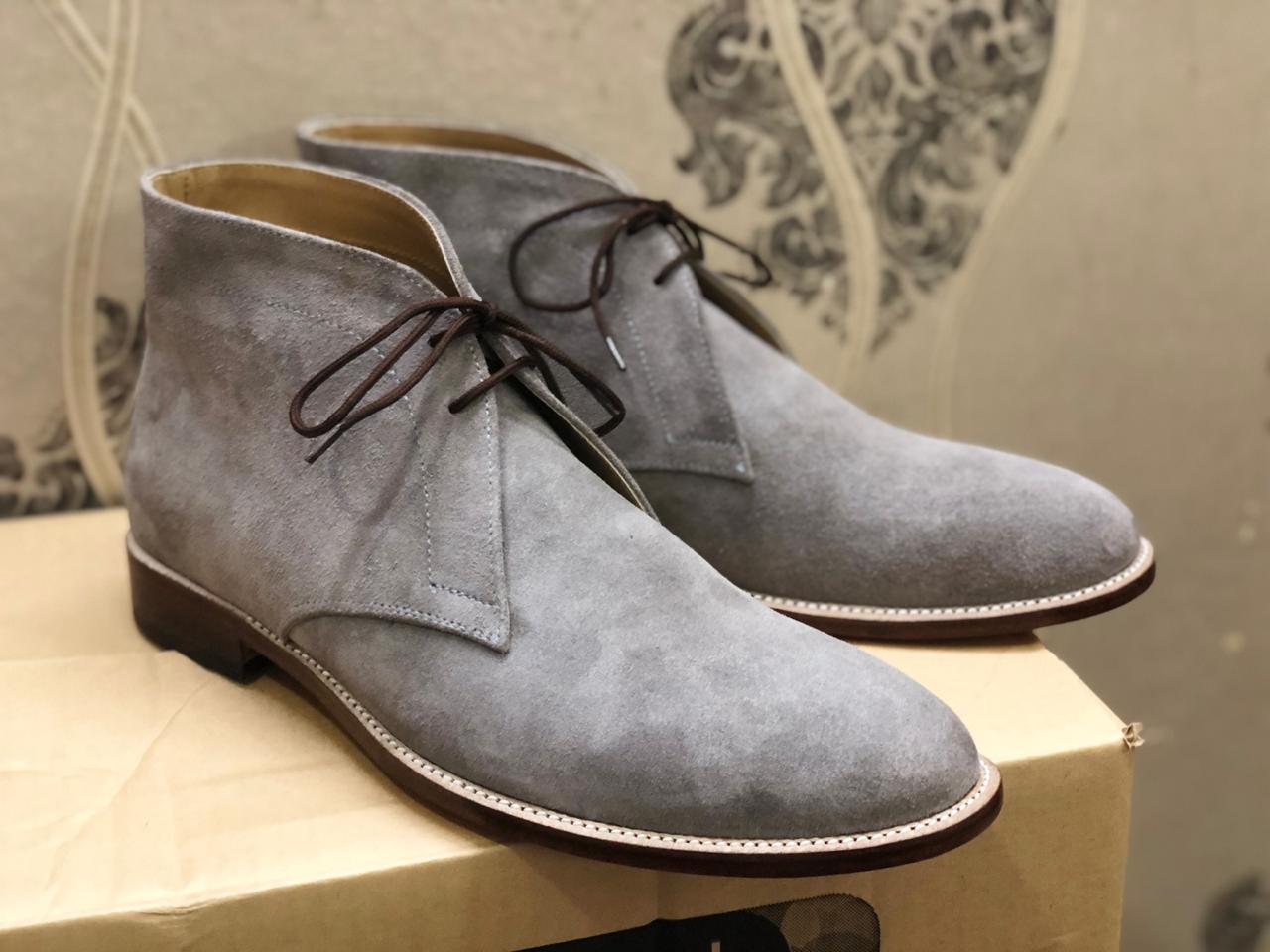 New Handmade Gray Half Ankle Suede Lace Up Boot For Men's