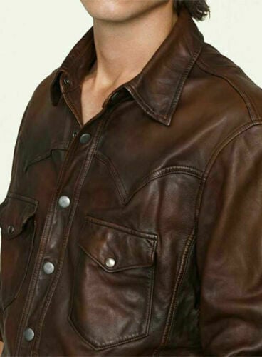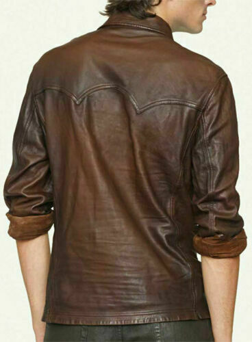 Men's Leather Shirt Genuine Lambskin Soft Basic Vintage Jacket Biker Slim Fit men