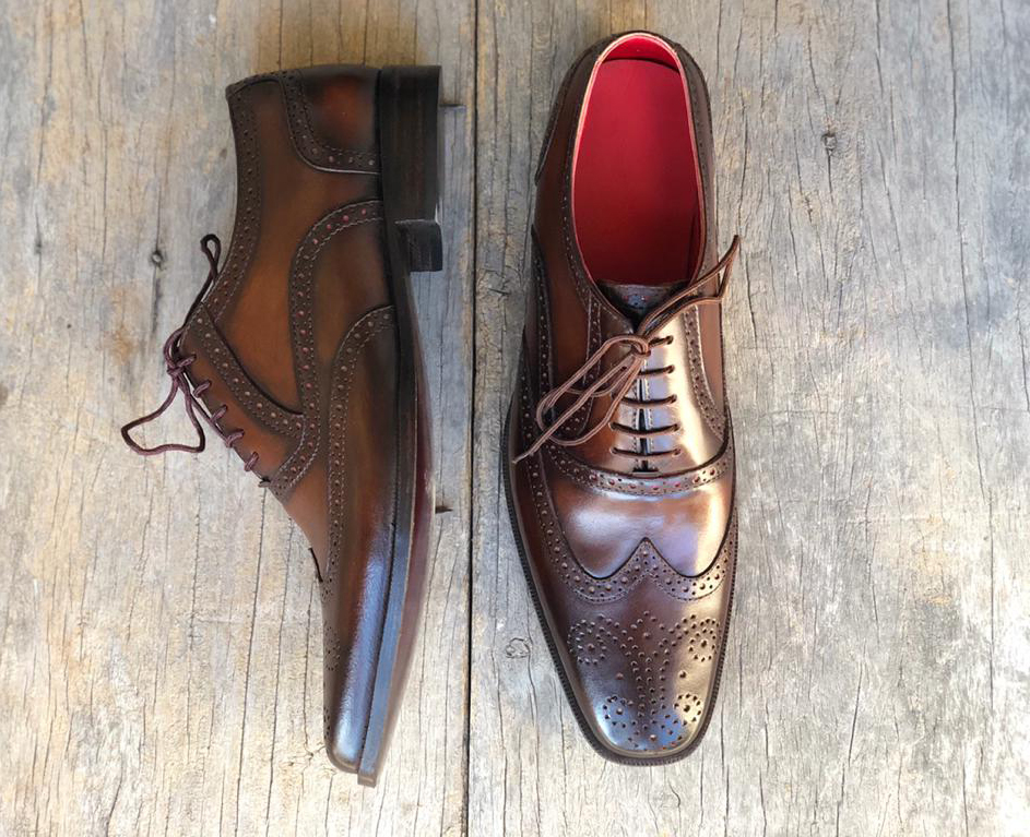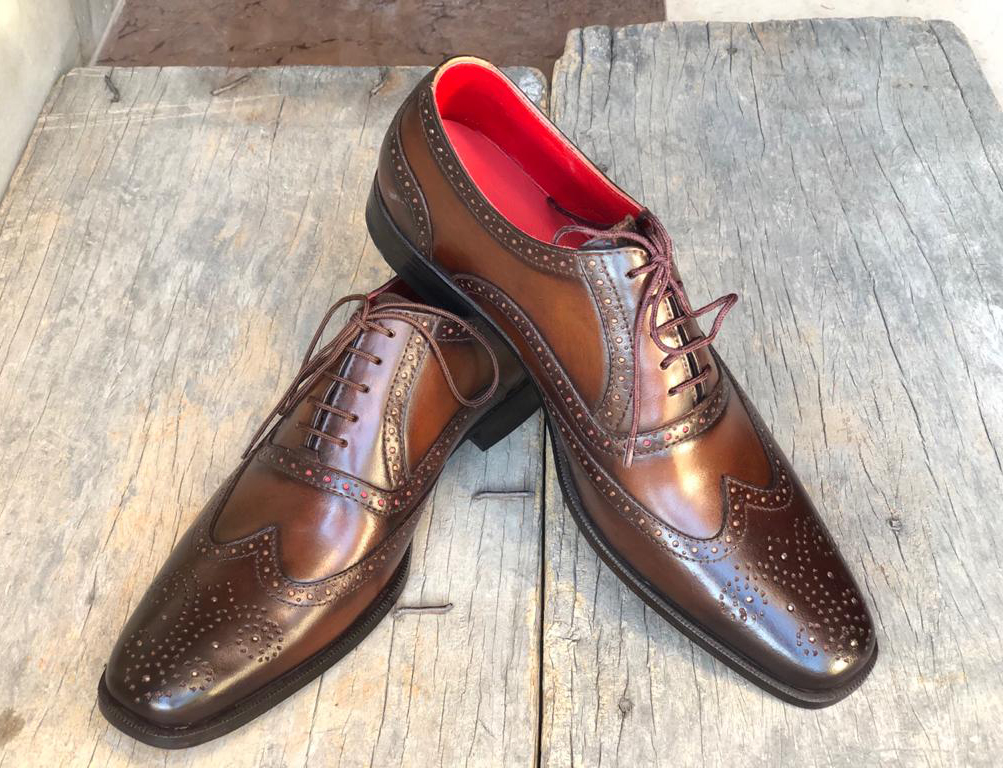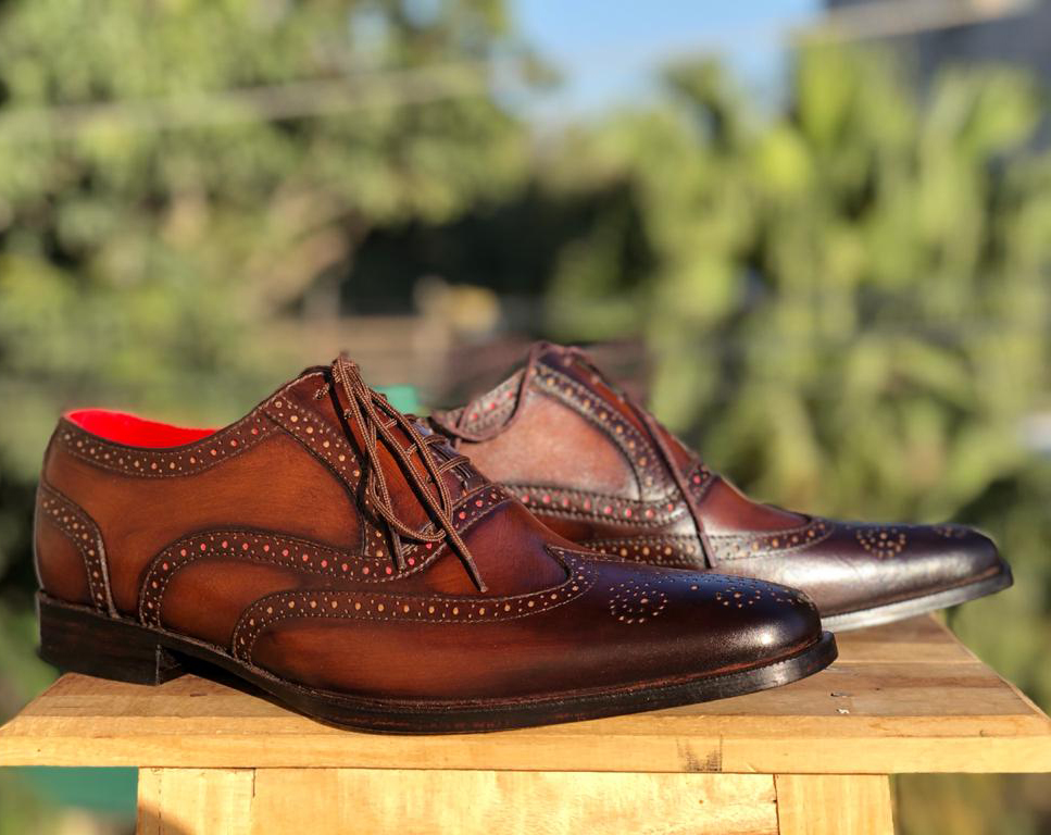 Men's Handmade Stylish Brown Wing Tip Brogue Leather Lace Up Shoes For Men's