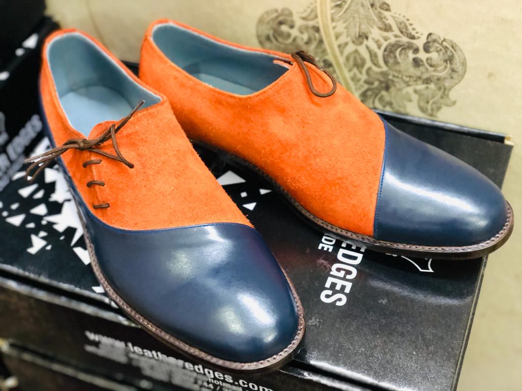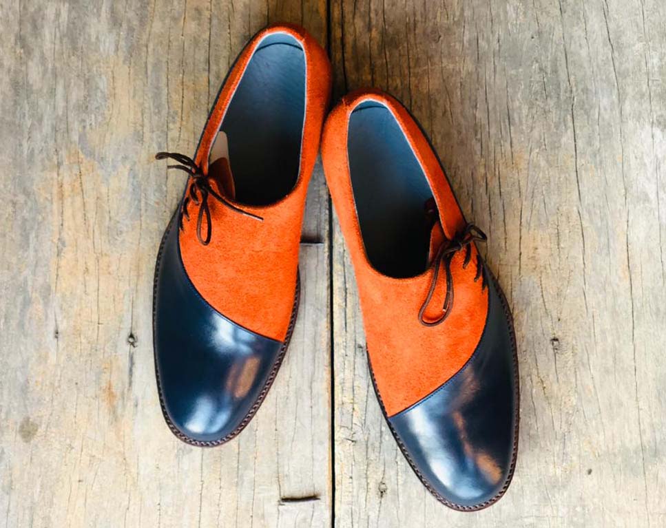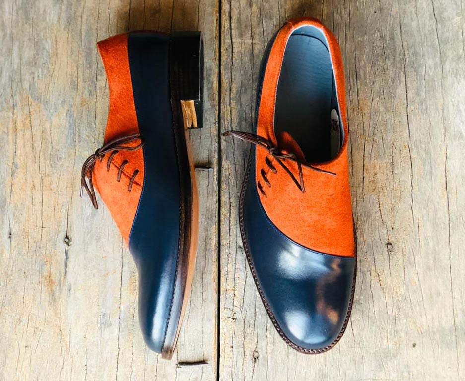 Handmade Stylish Blue & Tan Leather Suede shoes, Men's Lace Up Formal Shoes