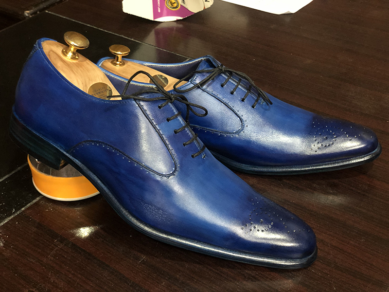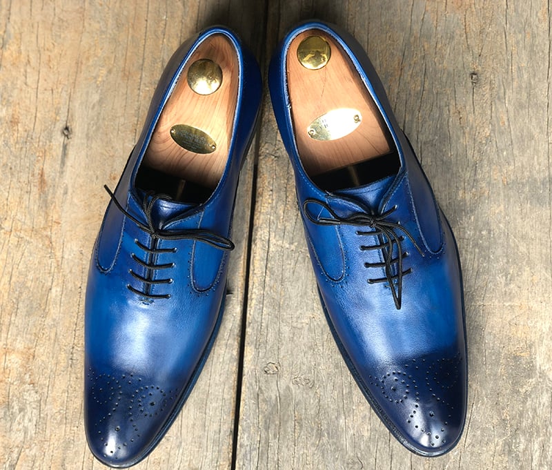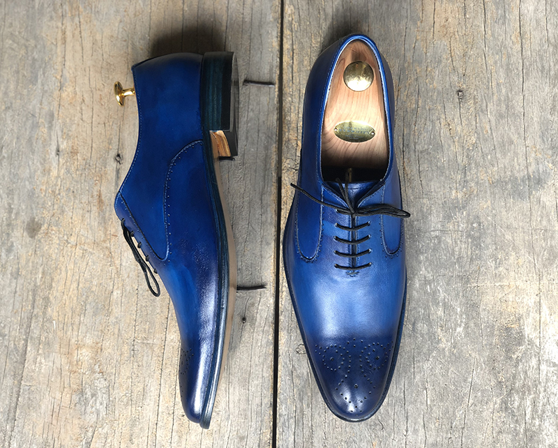 Men's Handmade Stylish Blue Brogue Pointed Toe Leather Lace Up Shoes For Men's