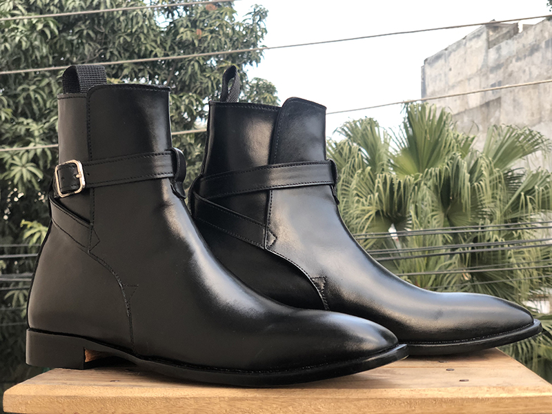 Men's Handmade Ankle High Black Jodhpurs Leather Boot