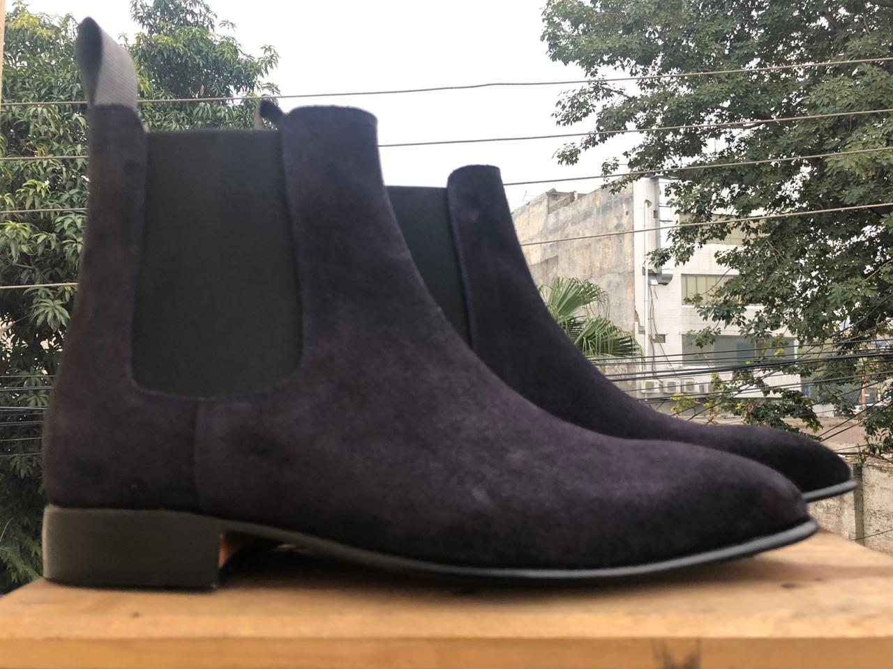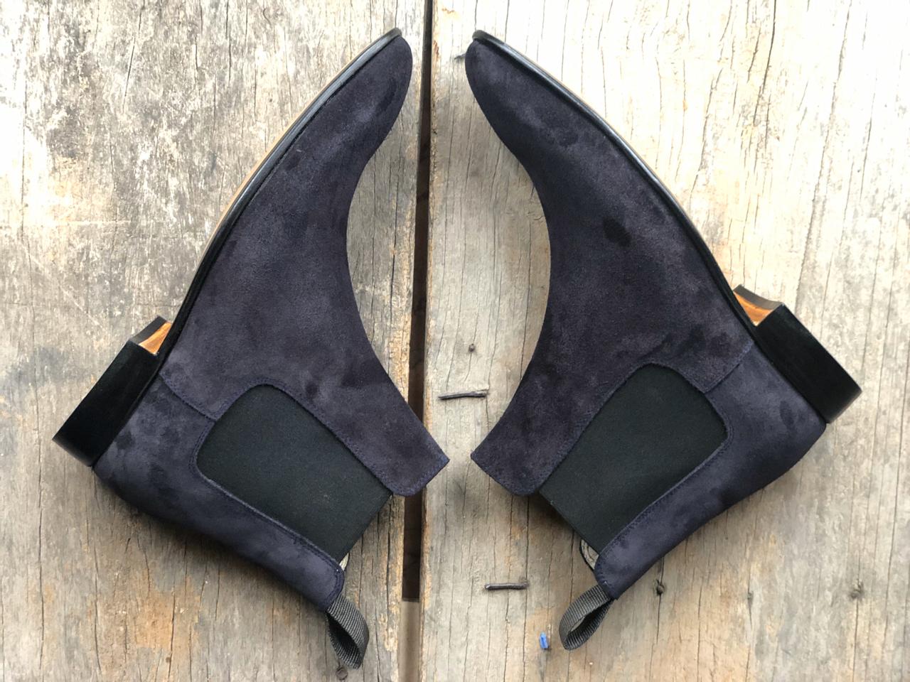 Handmade Men's Navy Blue Ankle Chelsea Suede Boot
