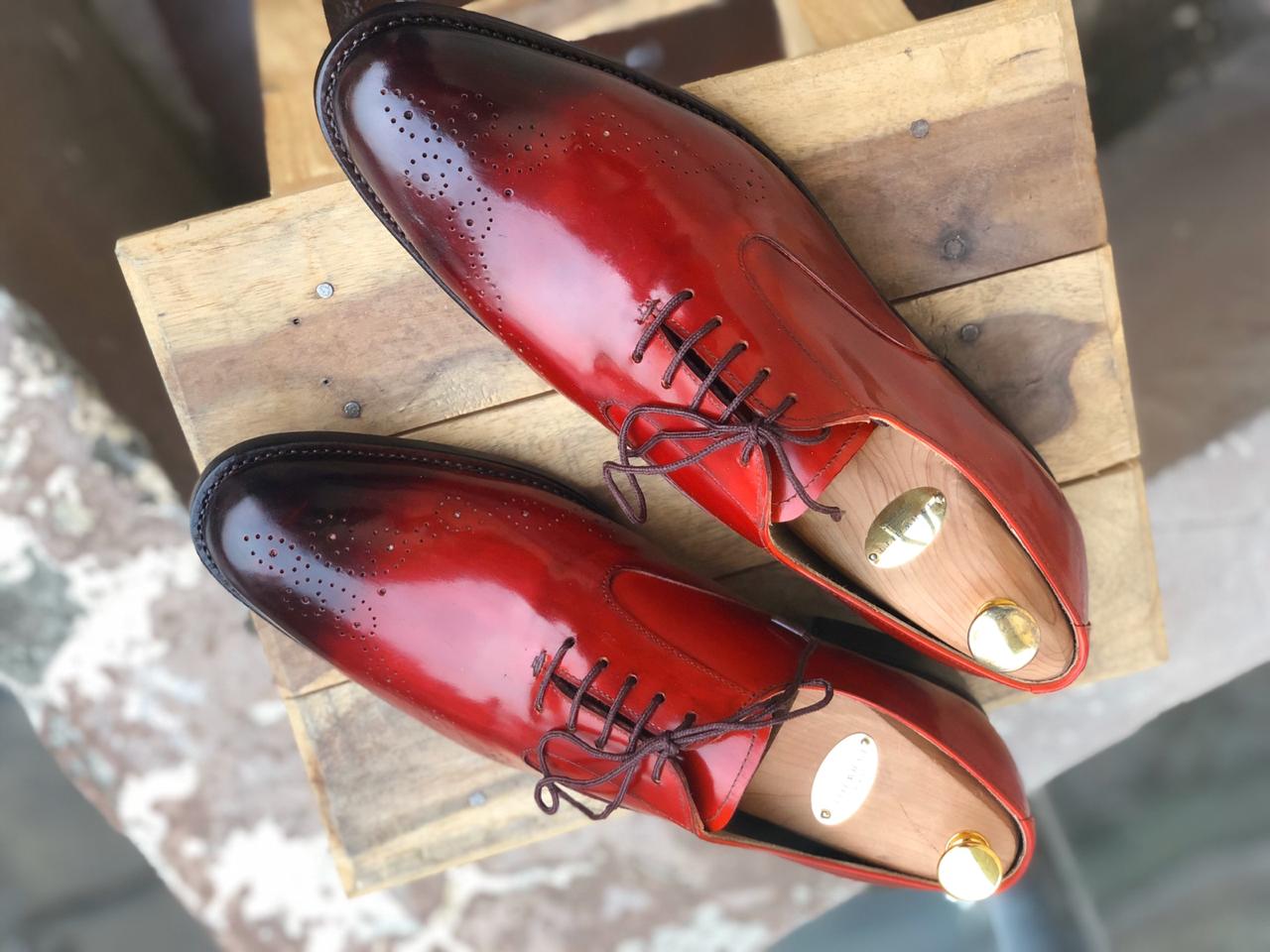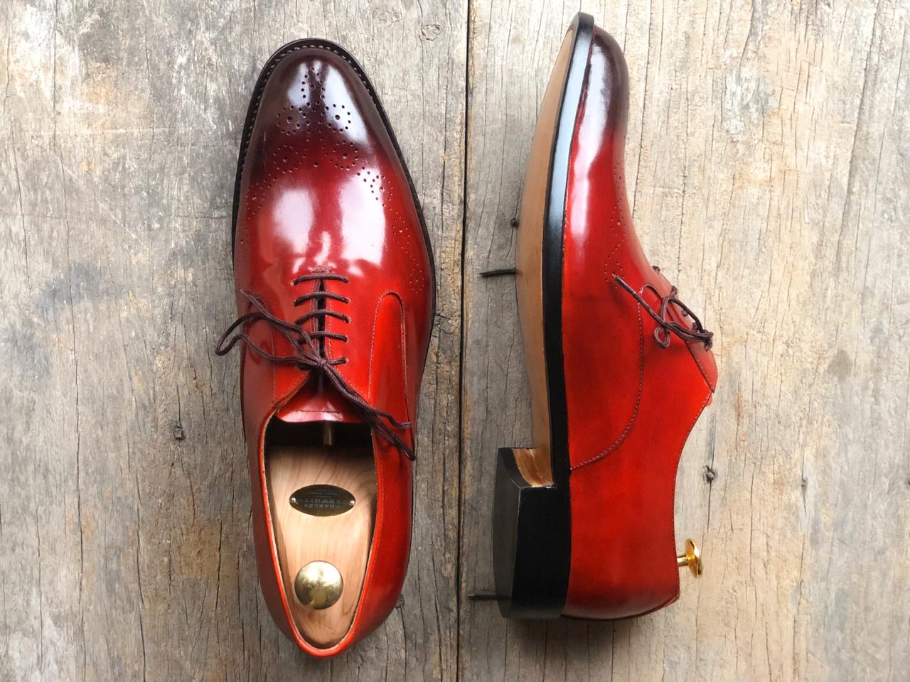 Handmade Tone Brown Shining Leather Shoes Lace Up Shoes For Men's