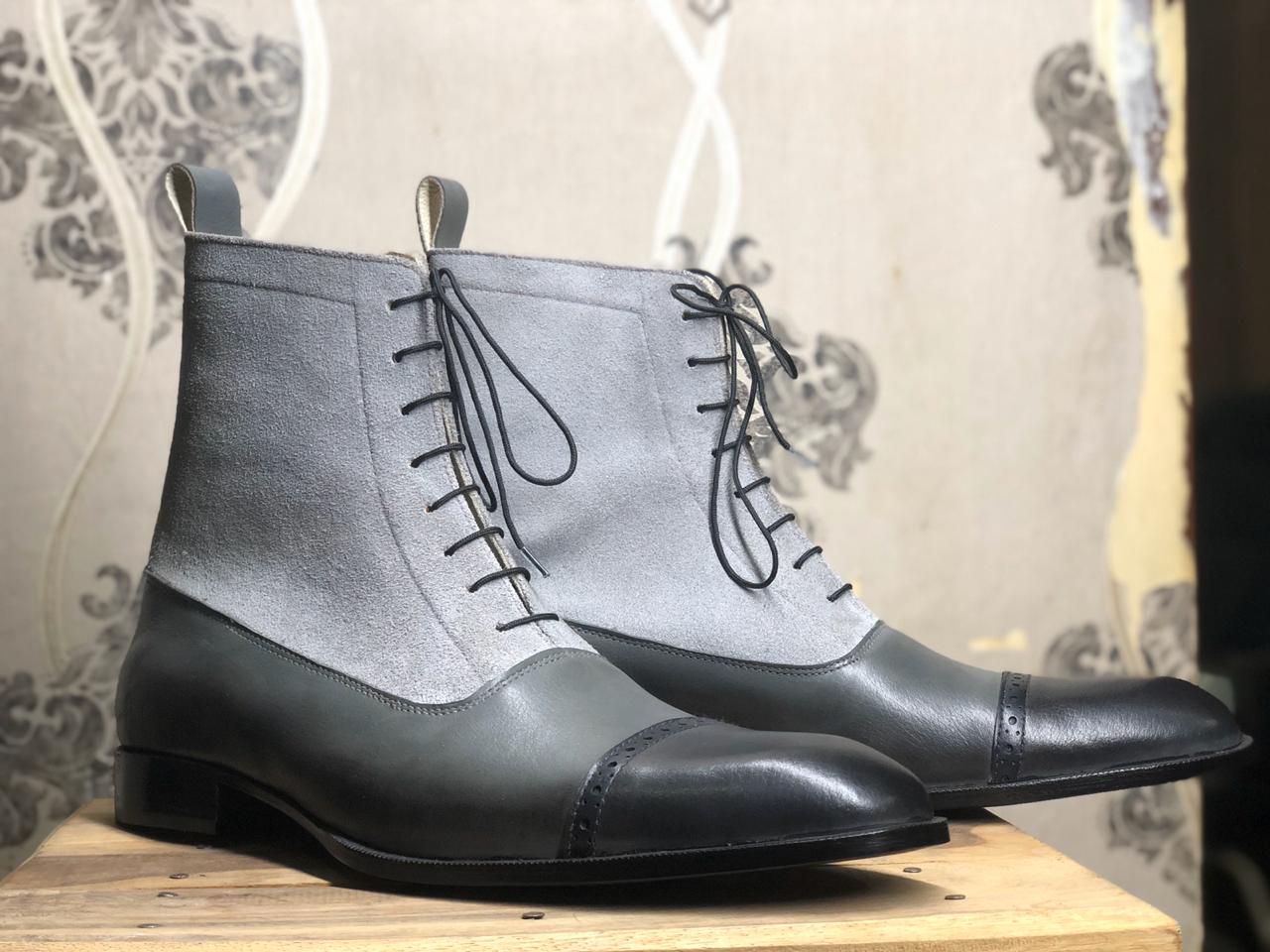 Men's Handmade Ankle High Gray Cap Toe Leather Suede Boot