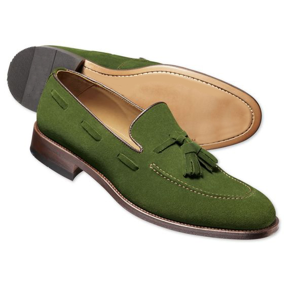 Men's Handmade Olive Green Suede Tussles Loafers Shoes