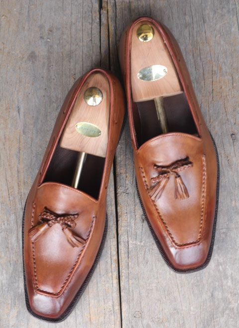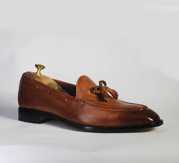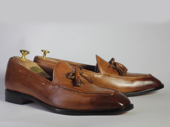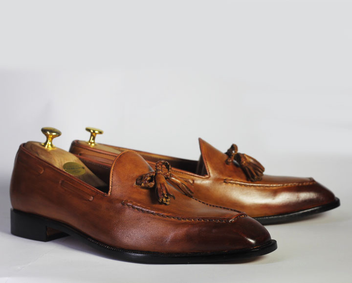 Handmade Brown Leather Tussles Loafers Shoes For Men's