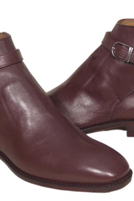 Men's Half Ankle Purple Grape Leather Monk Straps Jodhpurs Boot For Men's