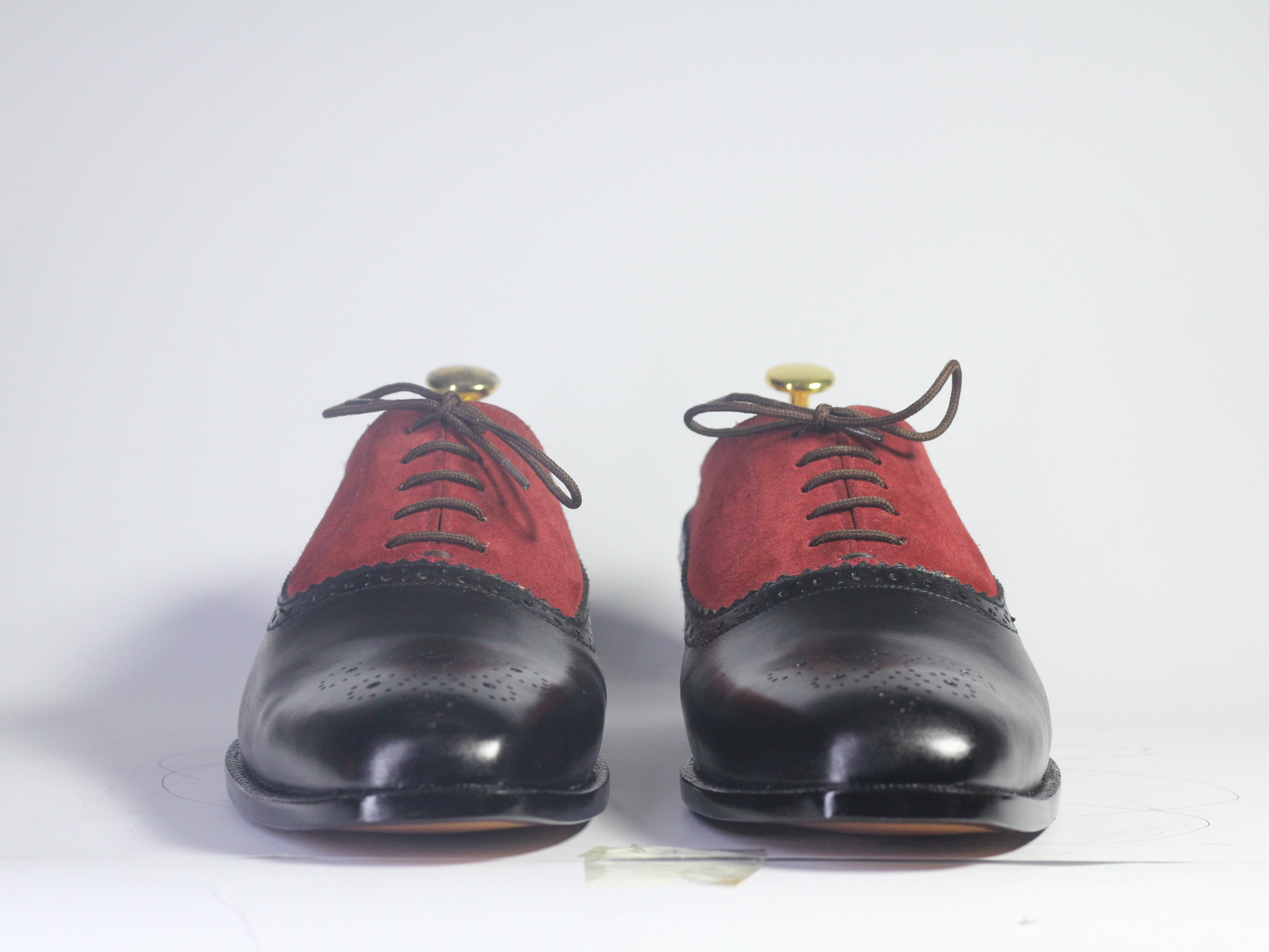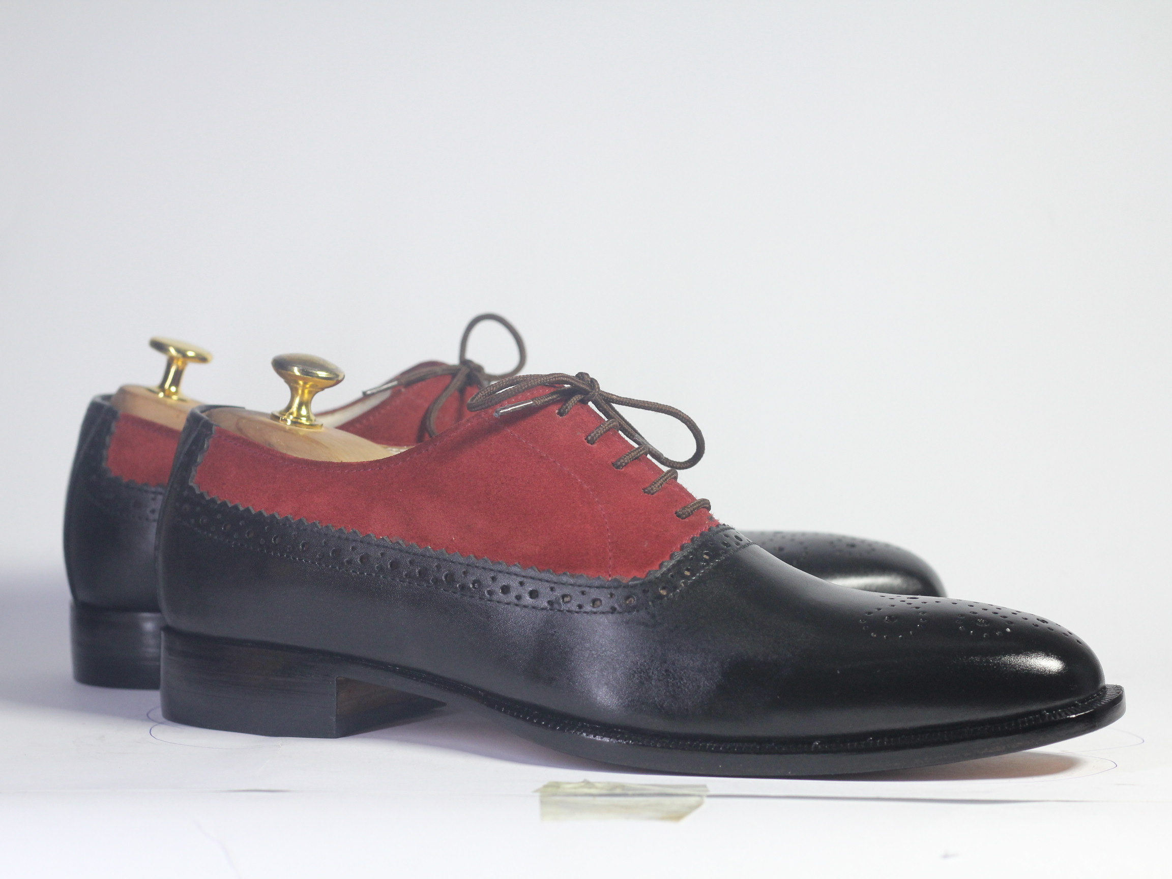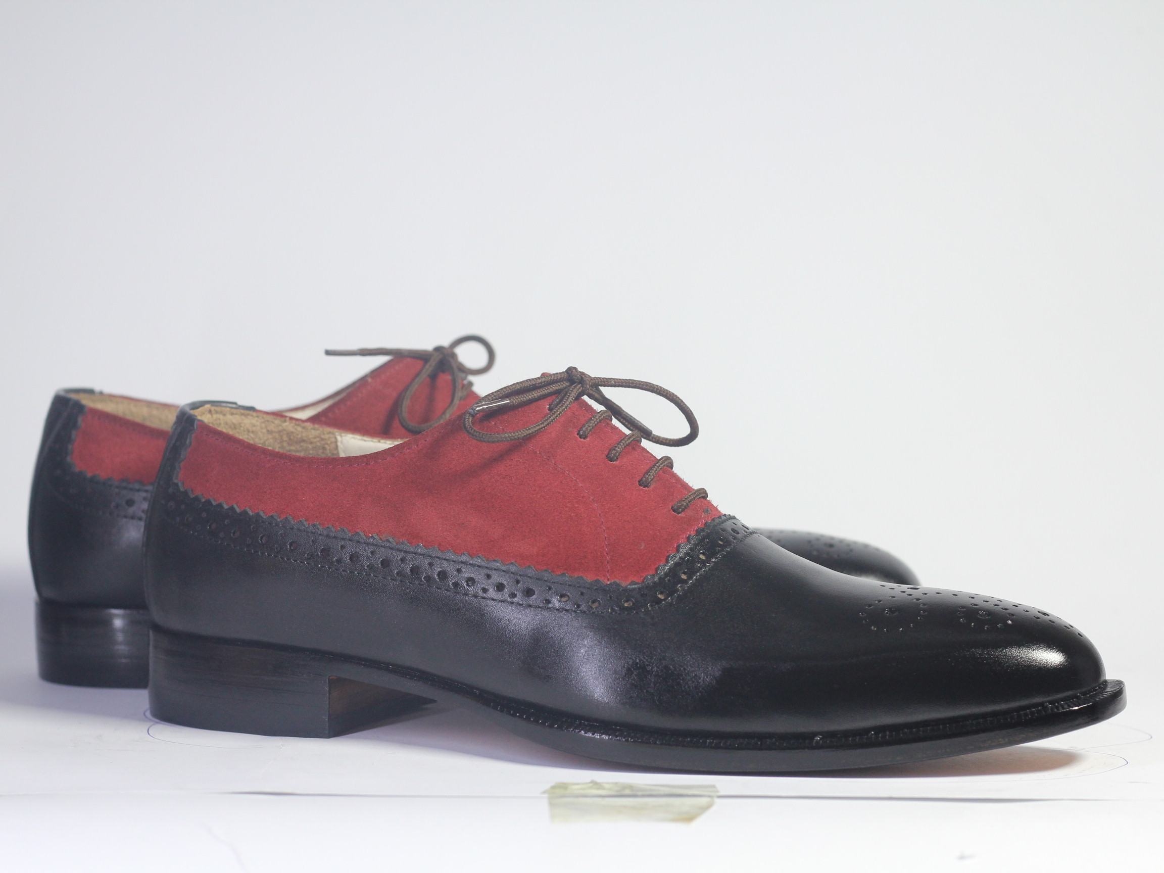 Handmade Black & Burgundy Leather Suede Lace Up Shoes For Men's