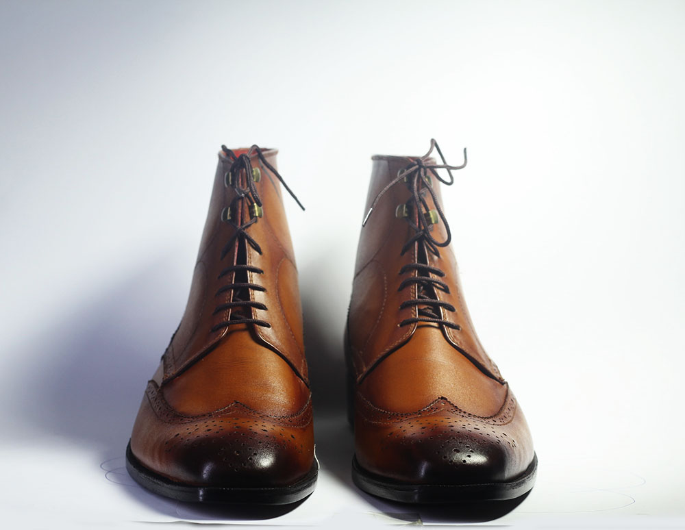 Men's Handmade Ankle High Brown Wing Tip Brogue Leather Lace Up Boot