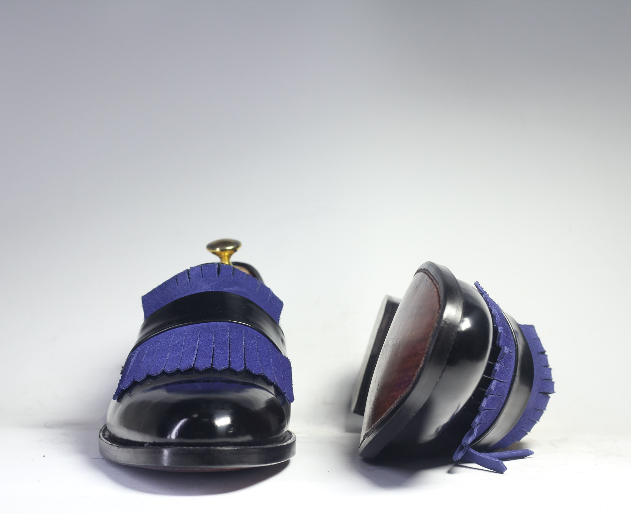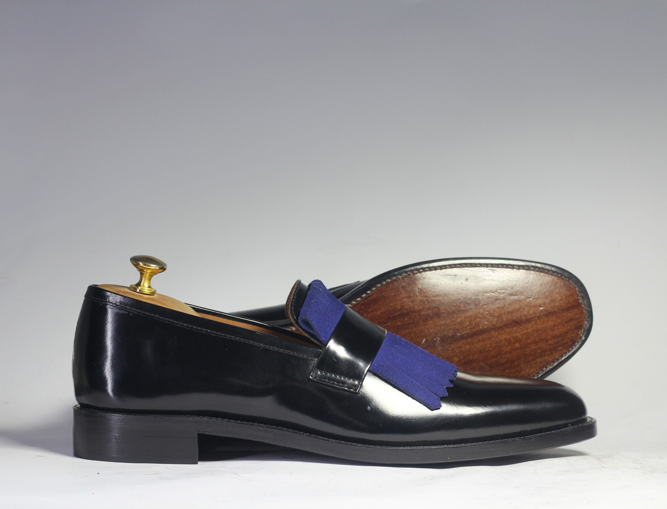 Handmade Black Fringe Loafer Leather Shoes For Men's