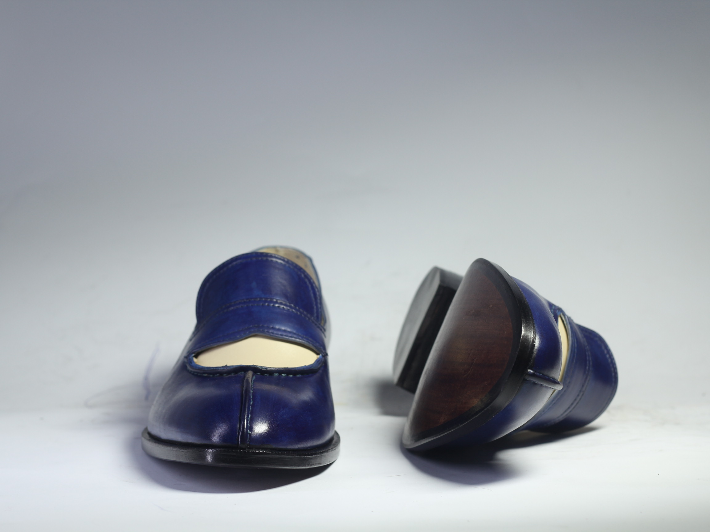 Men's Handmade Blue White Split Toe Loafers Leather Shoes