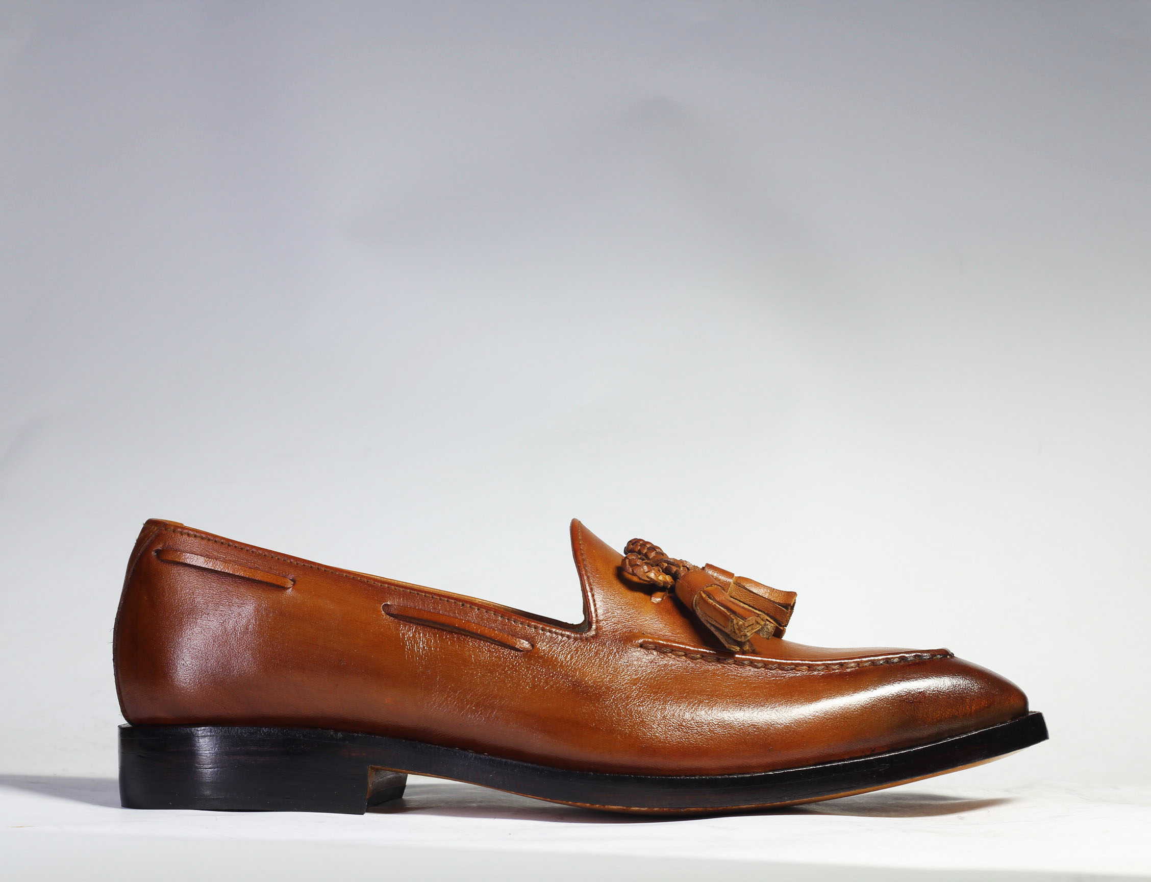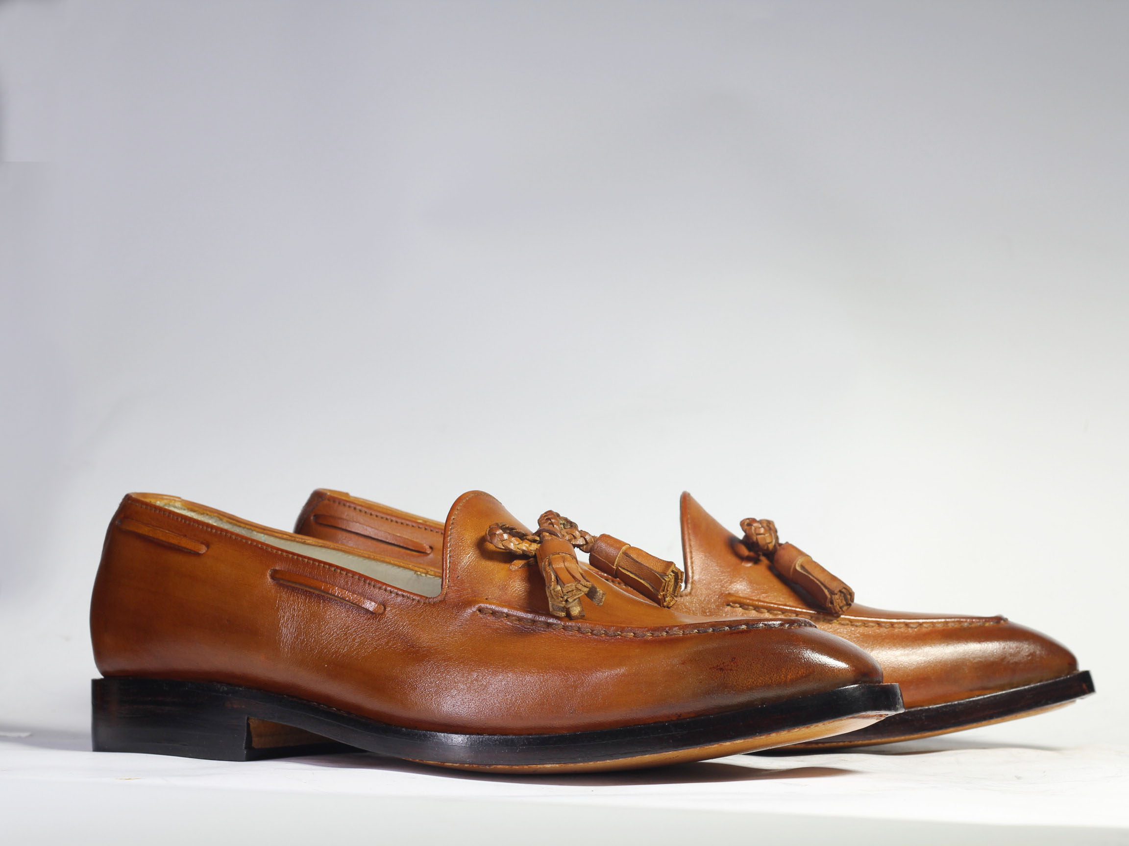 Handmade Brown Tussle Leather Loafers Shoes For Men's