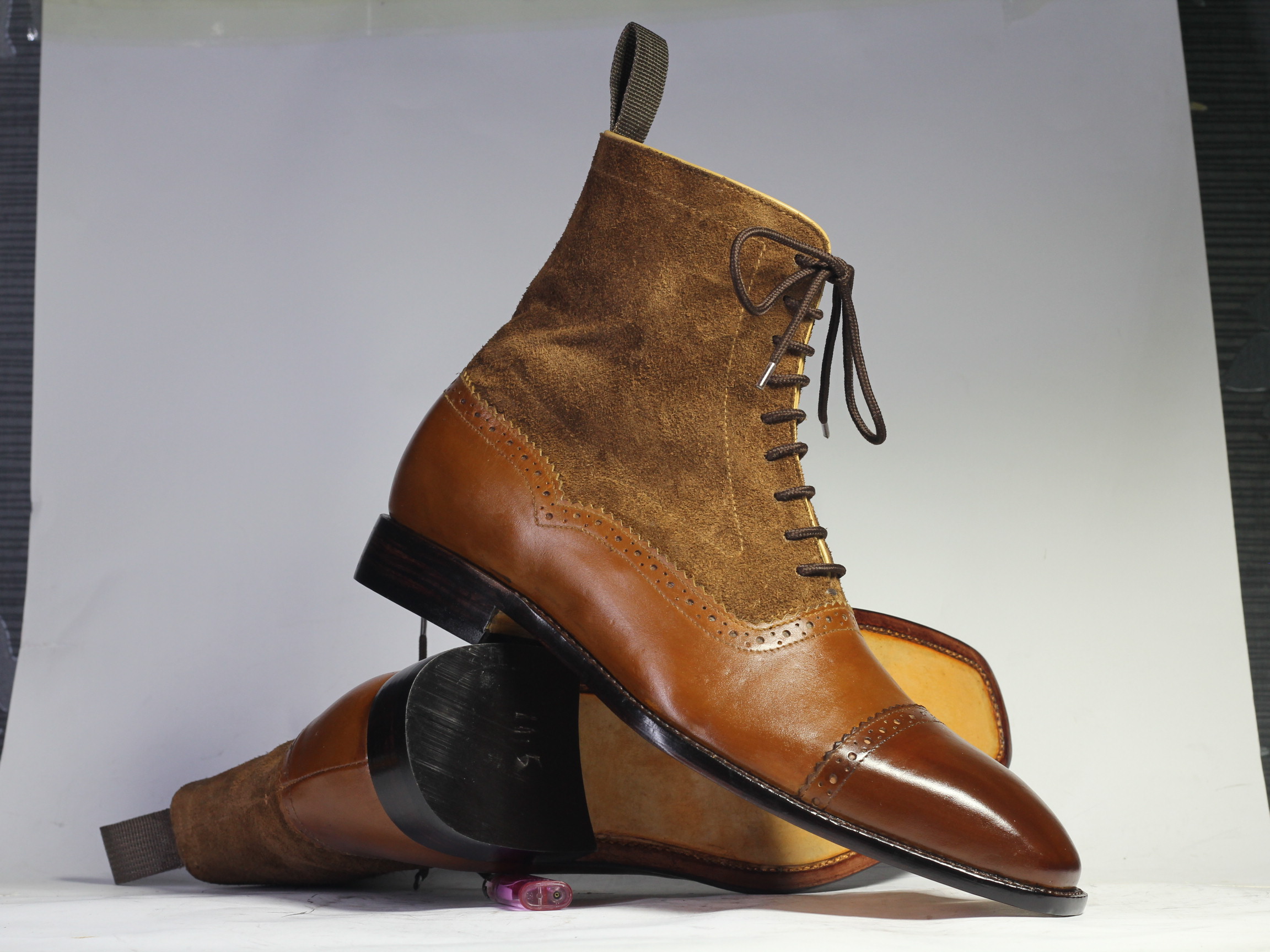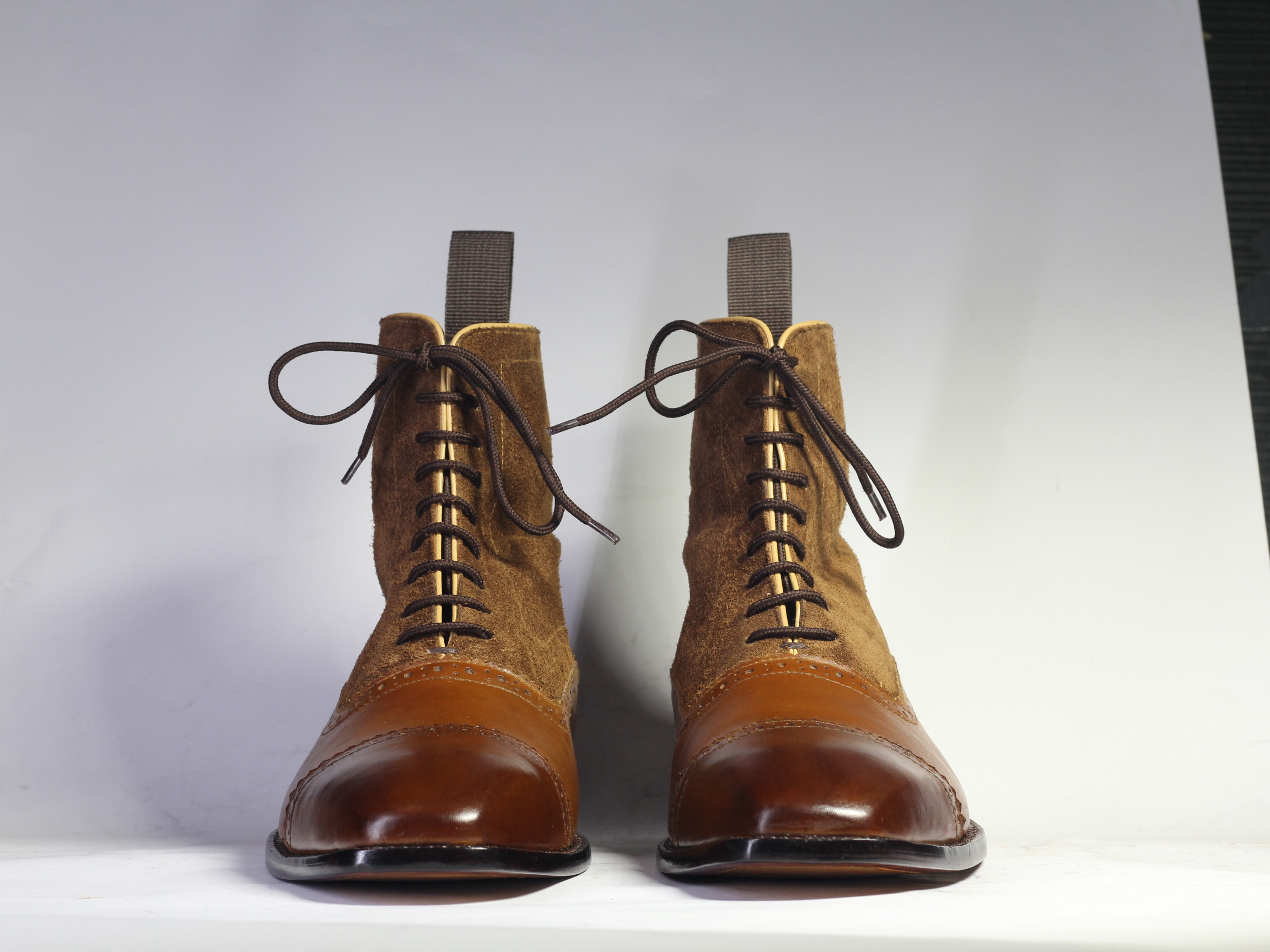 Handmade Brown Cap Toe Ankle High Leather Suede Lace Up Boot For Men's