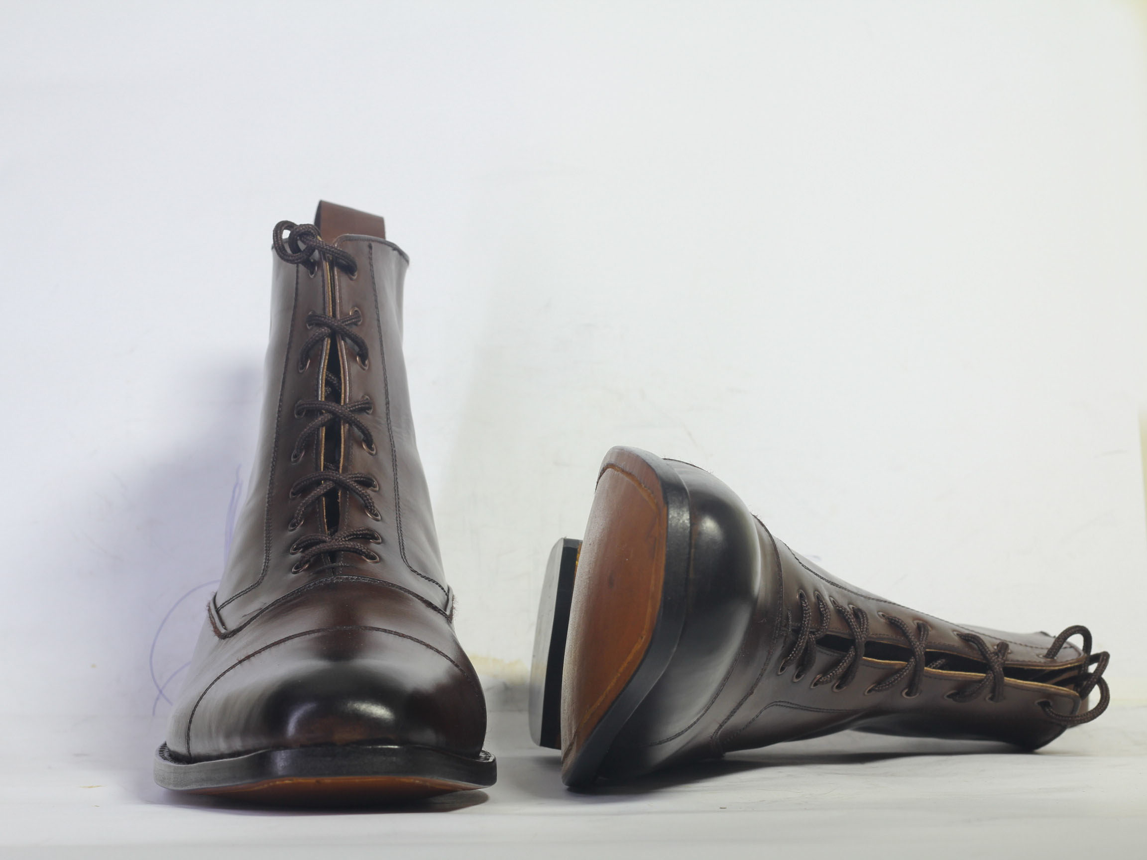 Handmade Chocolate Brown Cap Toe Ankle High Leather Lace Up Boot For Men's